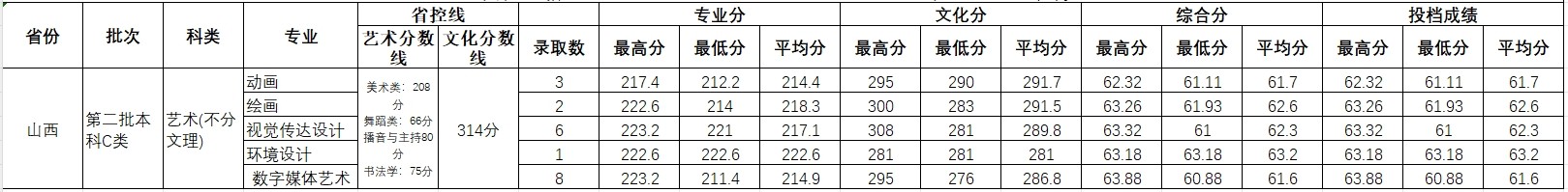 2023年山西 艺术类录取情况