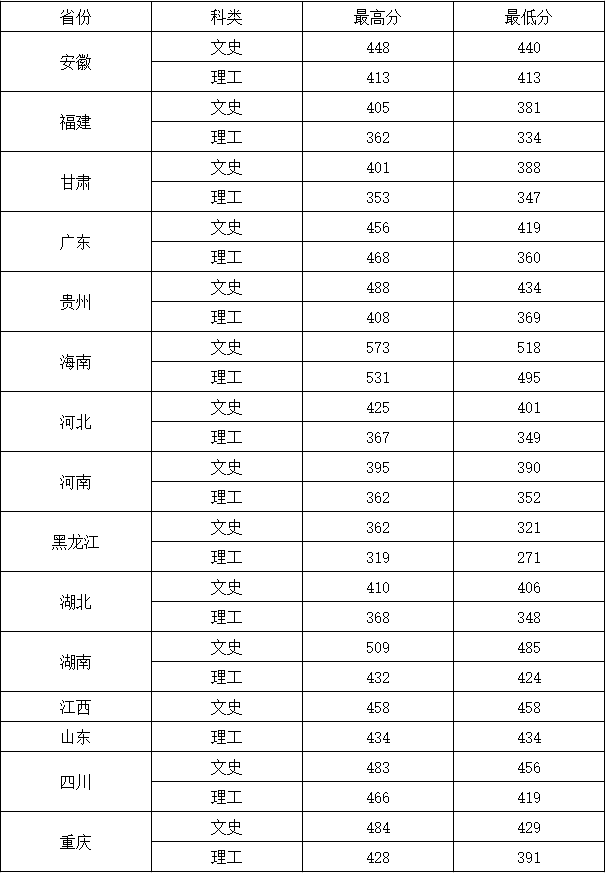 2017年 分省 首次投档最低分(普通类)