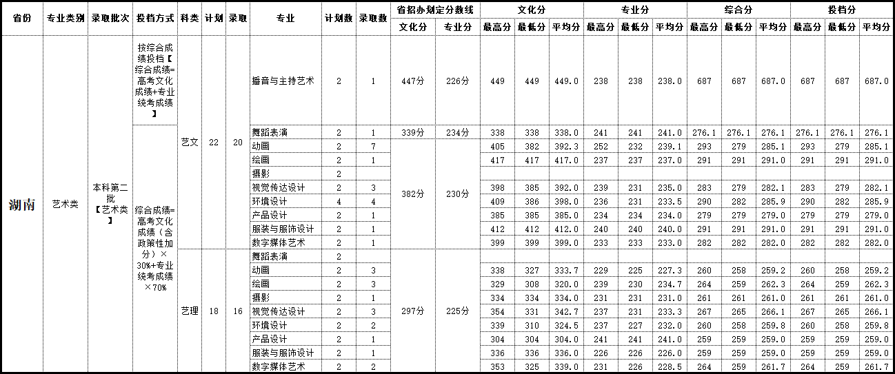 2019年 湖南录取情况