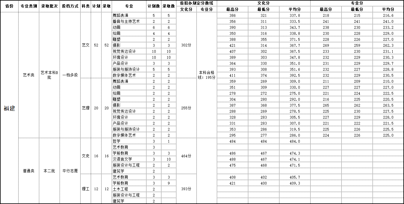 2019年 福建录取情况
