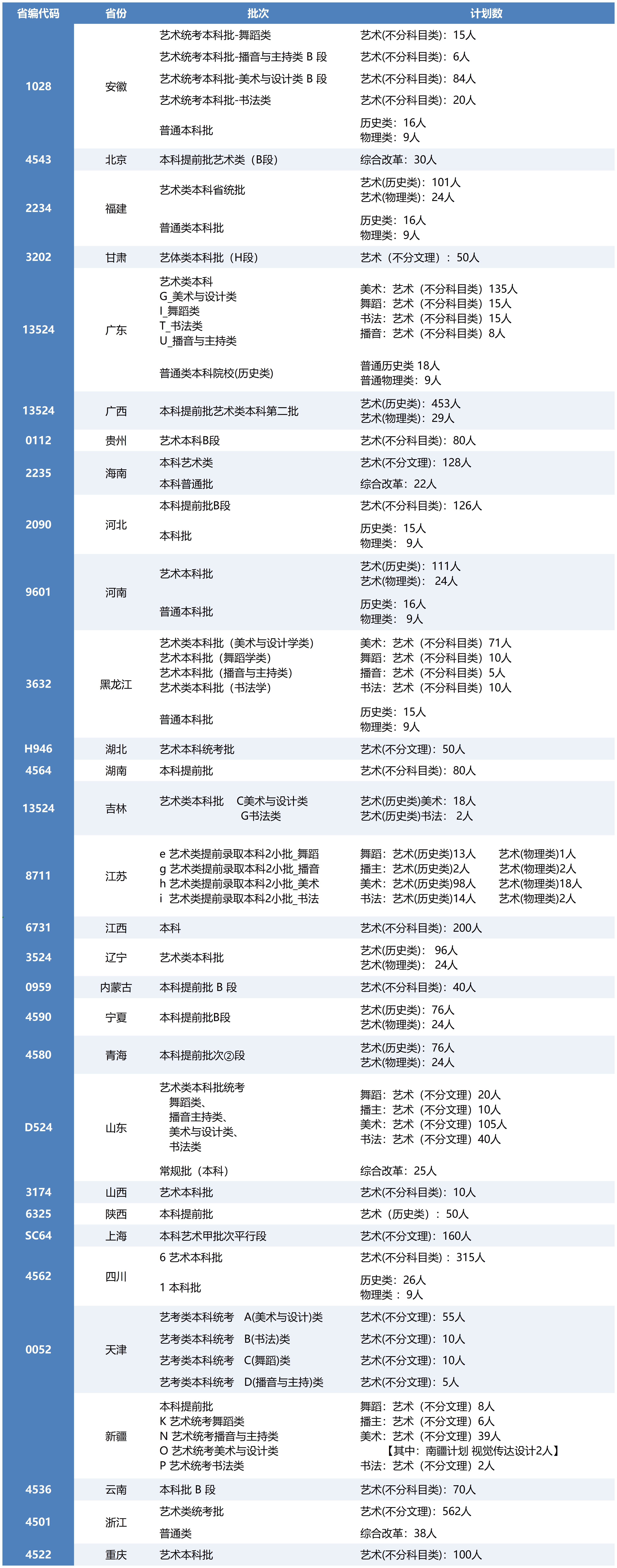 2025年 分省招生批次及计划数