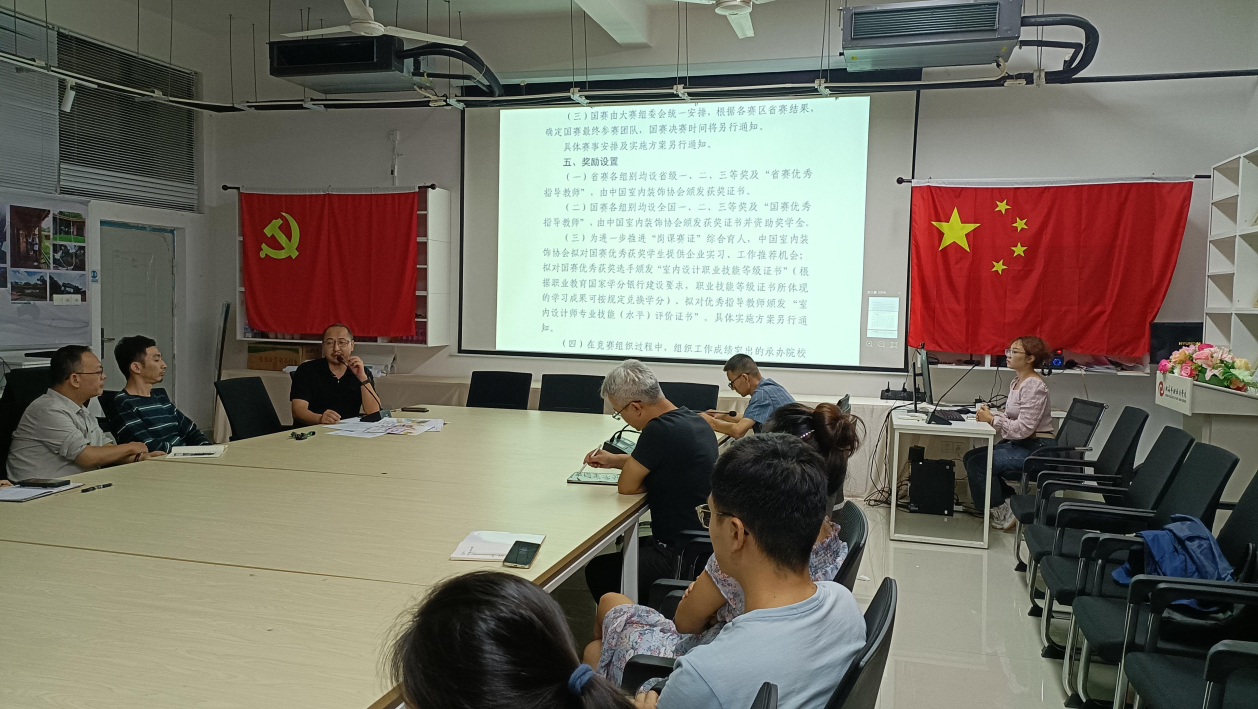 会议上,建环学院副院长张春东和教师刘洋梓分别向参会人员介绍了三项重要赛事。首先是“2023学院杯中国室内与环境设计大赛”,其次是“全国大学生第12届海洋文化创意设计大赛”,最后是“2023年全国院校室内设计技能大赛”。各位领导积极鼓励老师们带动学生们参与这些赛事,为学院的设计类教育注入新的活力。