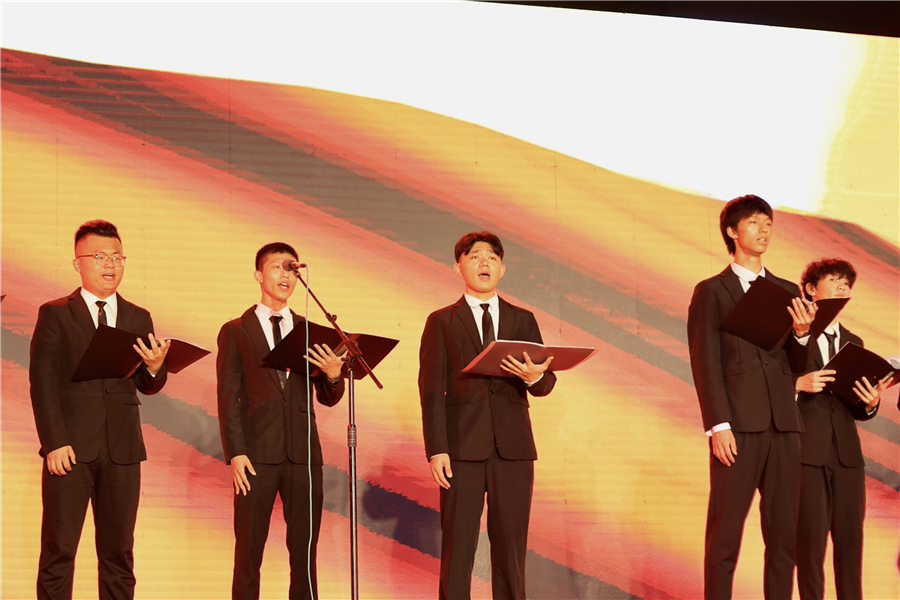 舞蹈表演1903班的学生带来《战地山花别样红》,带我们回到了过去的峥嵘岁月,感受到先辈们前赴后继牺牲的伟大精神。男生小组合唱《把一切献给党》,清朗的歌喉表达了中华儿女对党的深切热爱。 舞蹈《无名的功勋》,场面宏伟震撼,伴随着炮响轰隆的音效,让我们回忆起战乱和无名英雄崛起的年代,为这些无名的功勋致敬。 话剧社带来的《抗日英雄》,那些英勇无比的战士们,那些难以言喻的爱国情感,都深深地刻在了每个中华儿女的骨子里,令人动容。