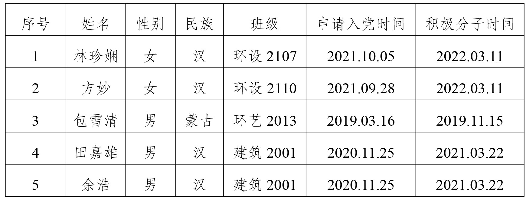 关于拟将林珍娴等5位同志列为发展对象人选的公示