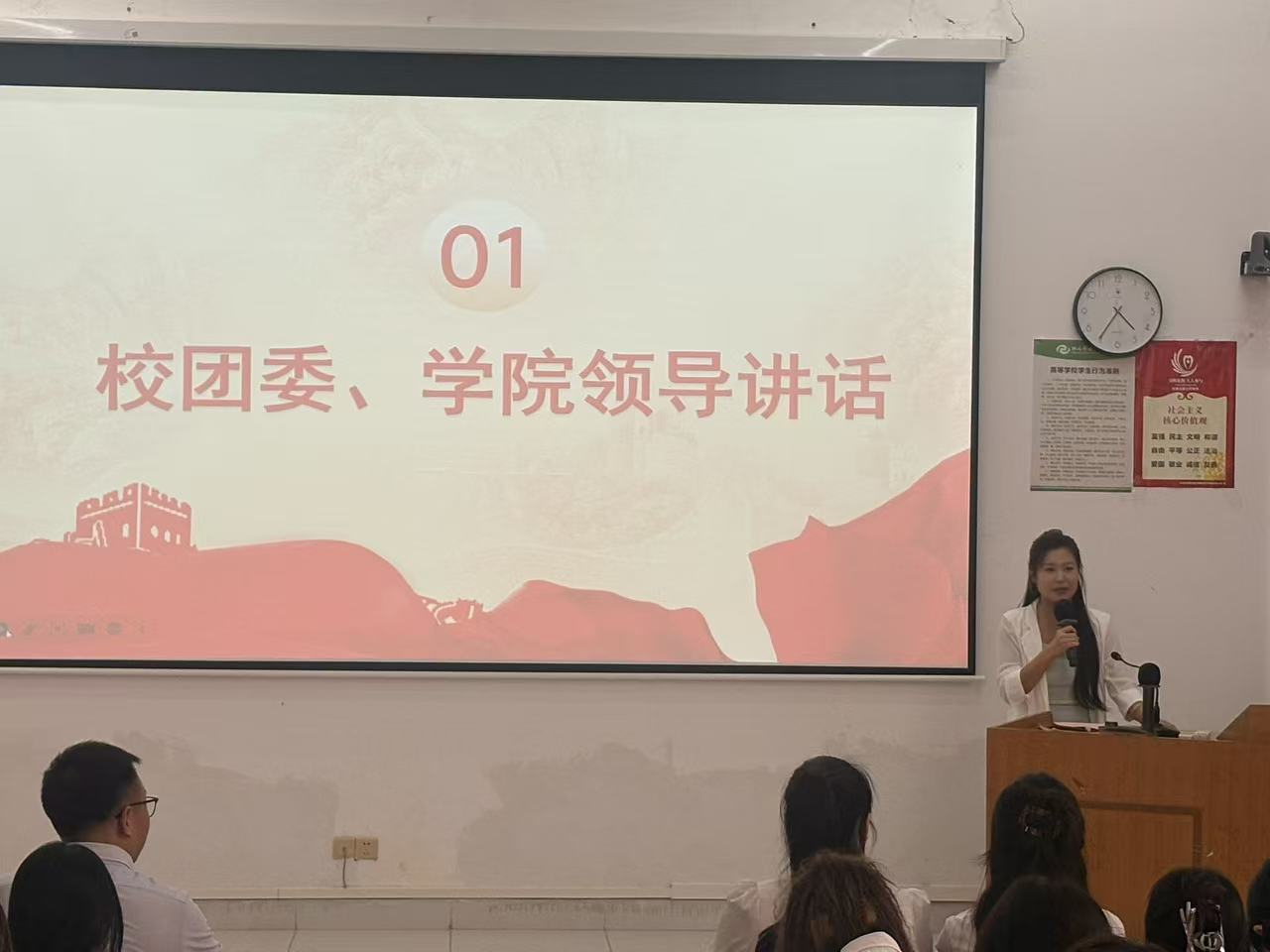 校团委副书记杨美琪在讲话中强调,要深刻领会习近平总书记在庆祝共青团成立100周年大会上的重要讲话精神,恪守“做青年友,不做青年官”的原则。她指出,团干部要扎根青年群体,推动理论联系实际,在服务国家发展与民族复兴的伟大实践中挥洒青春、贡献力量。