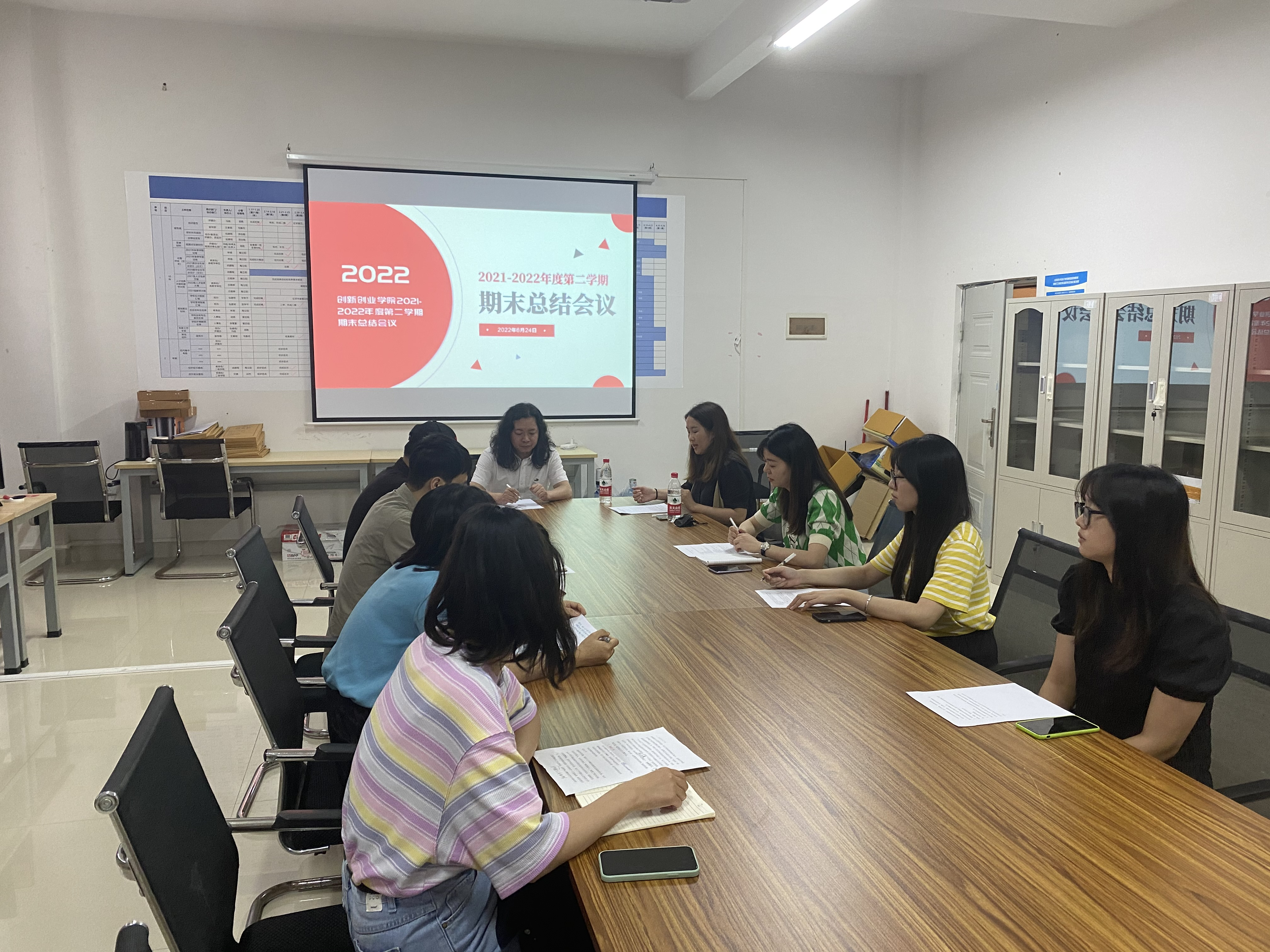 624日(星期创新创业学院行政楼211会议室召开2021-2022年度第二学期期末总结会会议创新创业学院院长云曼主持,校领导胡胜、创新创业学院全体教职工参加本次会议。