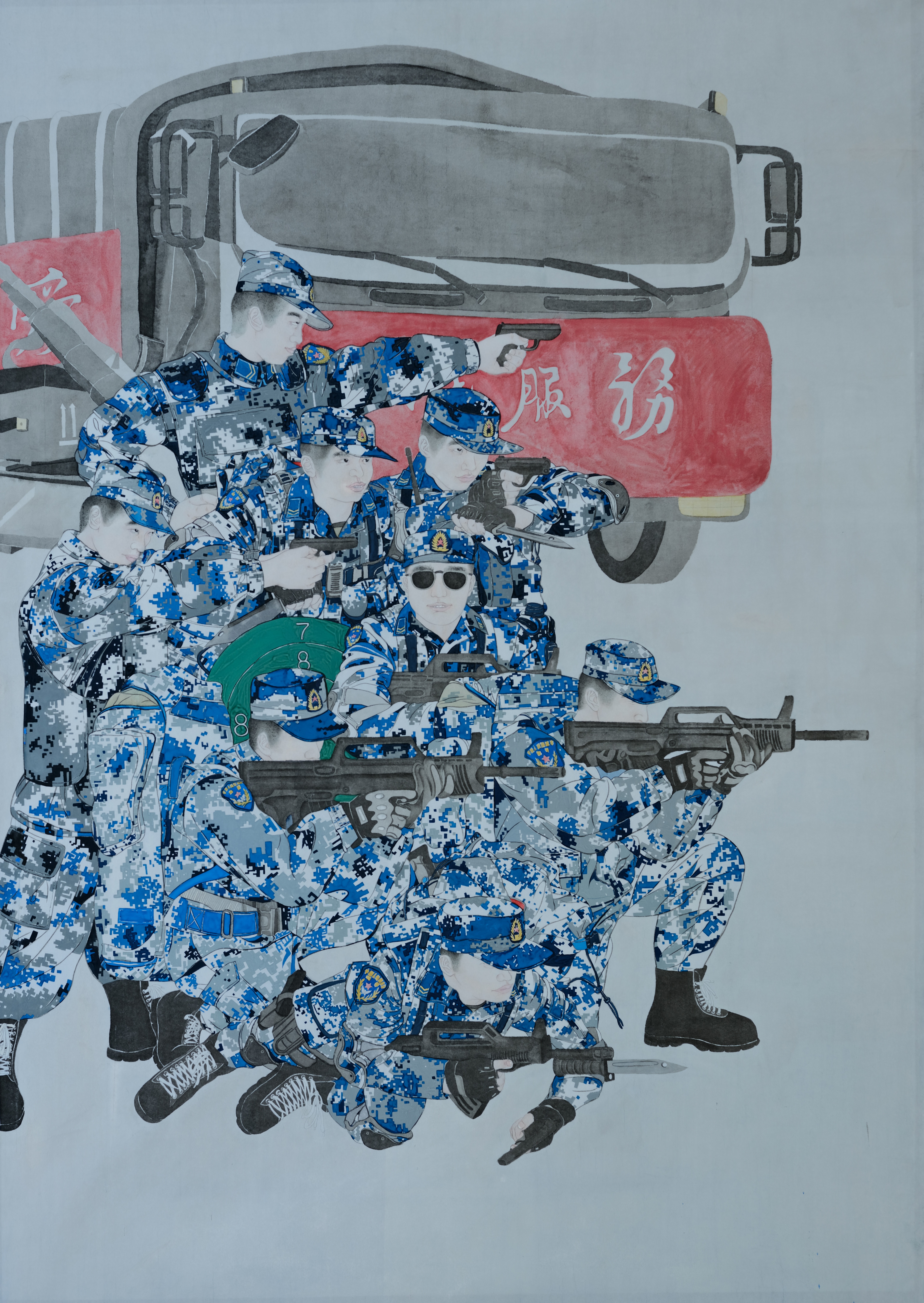 金燕玲《保卫黄河》120cm×161cm 2023年  纸本
