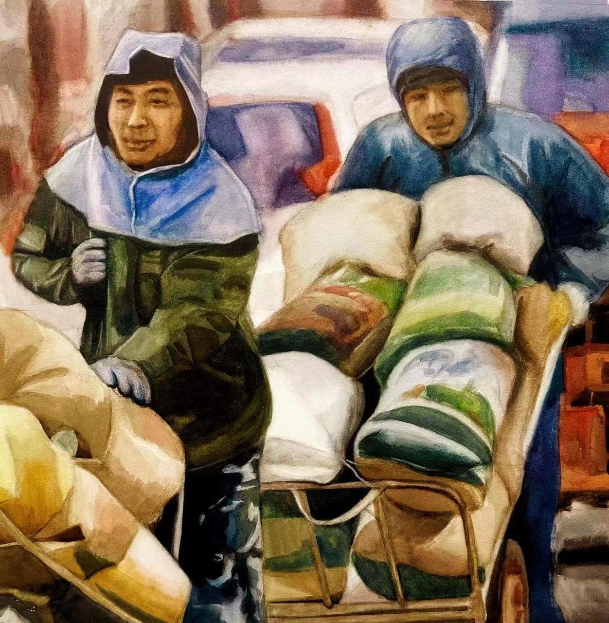 李兆悦  《紧急疏散》 55cm×55 cm  2023年 纸本水彩