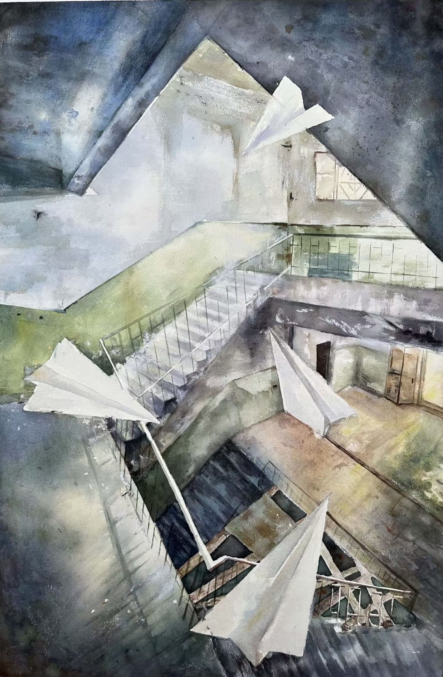 张官却什吉 《厂房的空间》54cm  x76cm2023年 纸本水彩