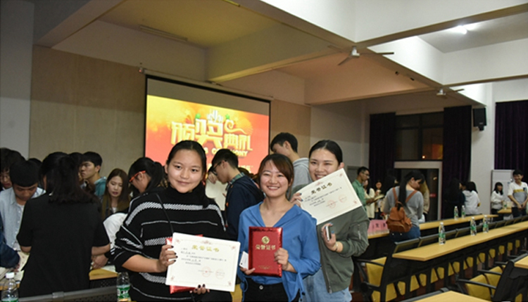 典礼后,获奖的同学开心的合影留念。(吴贵婷/摄)