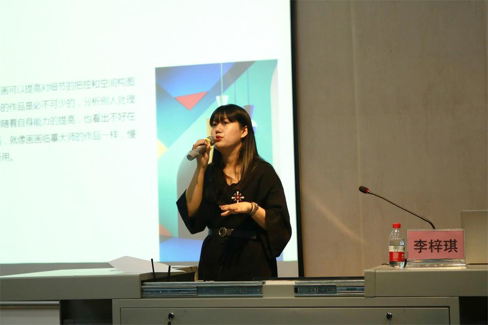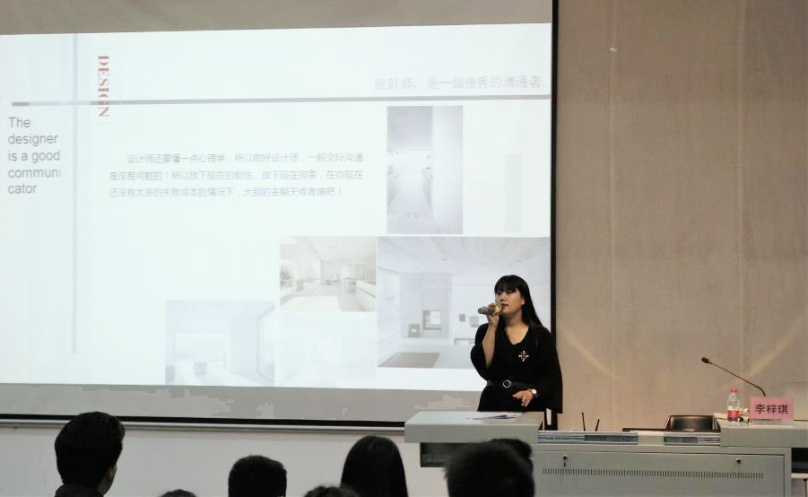 李梓琪教授的讲演幽默风趣,她首先将同学们带入她的设计世界,用特有的方式“设计生活”进行详细的阐述,并提出了“设计源于生活,生活源于设计”的创作理念。