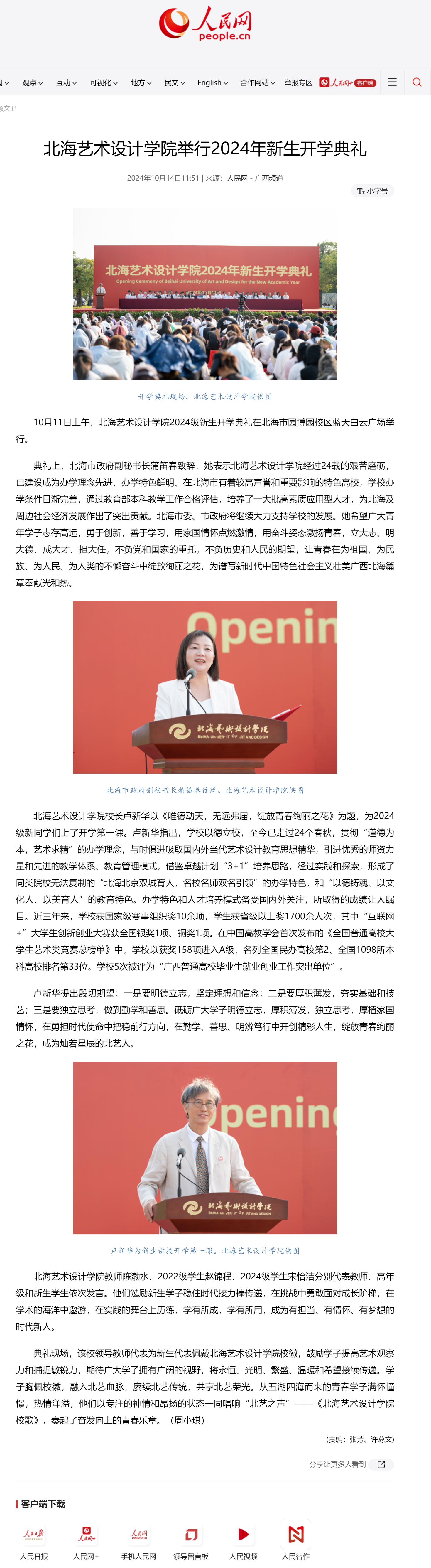 人民网:北海艺术设计学院举行2024年新生开学典礼