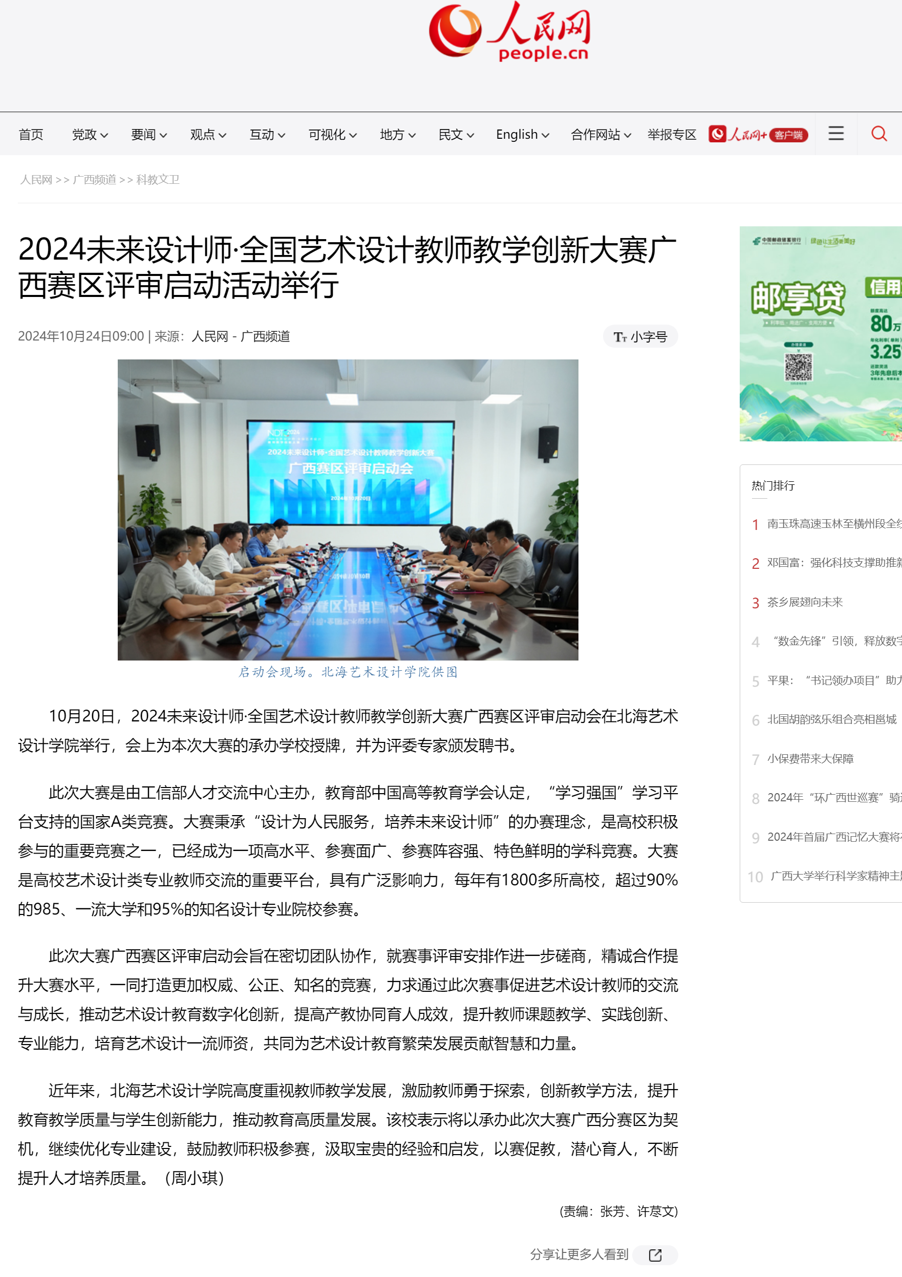 人民网:2024未来设计师·全国艺术设计教师教学创新大赛广西赛区评审启动活动举行