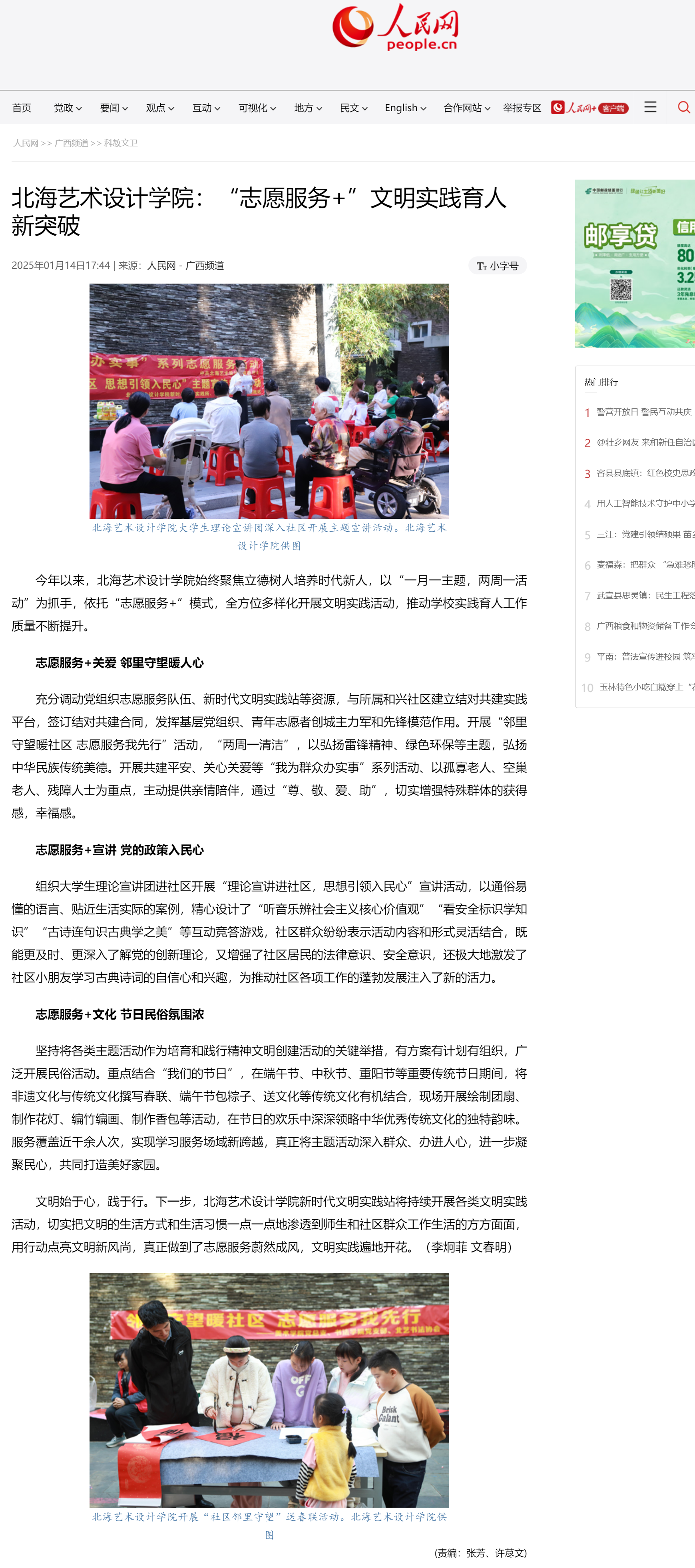 人民网:北海艺术设计学院:“志愿服务+”文明实践育人新突破
