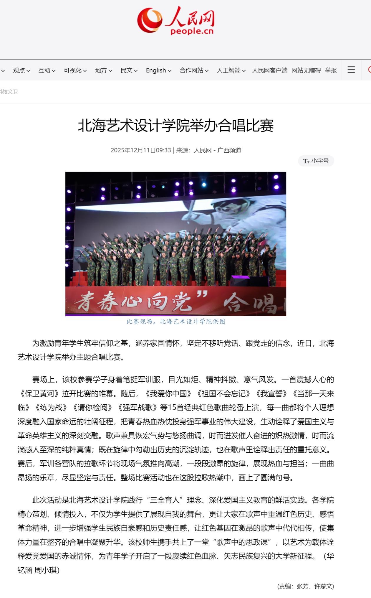 人民网:北海艺术设计学院举办合唱比赛