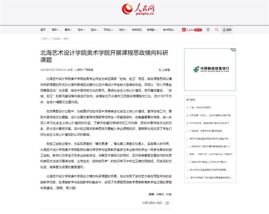 人民网:北海艺术设计学院美术学院开展课程思政横向科研课题