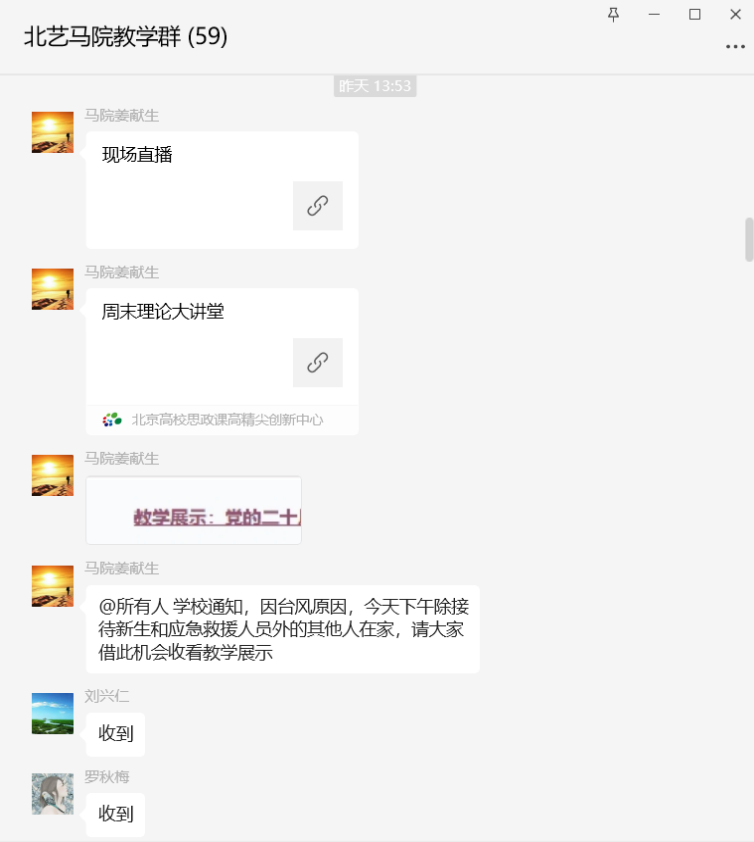 由于受今年第11号超强台风“摩羯”的影响,北海市在全市范围内启动了“停课、停工、停游、停市、停运”等“五停”措施。9月6日下午,马克思主义学院根据实际情况,充分发挥“互联网+”的作用,组织全体教师通过线上的方式集中收看“周末理论大讲堂”,做到了停工不停学、学习不延期。