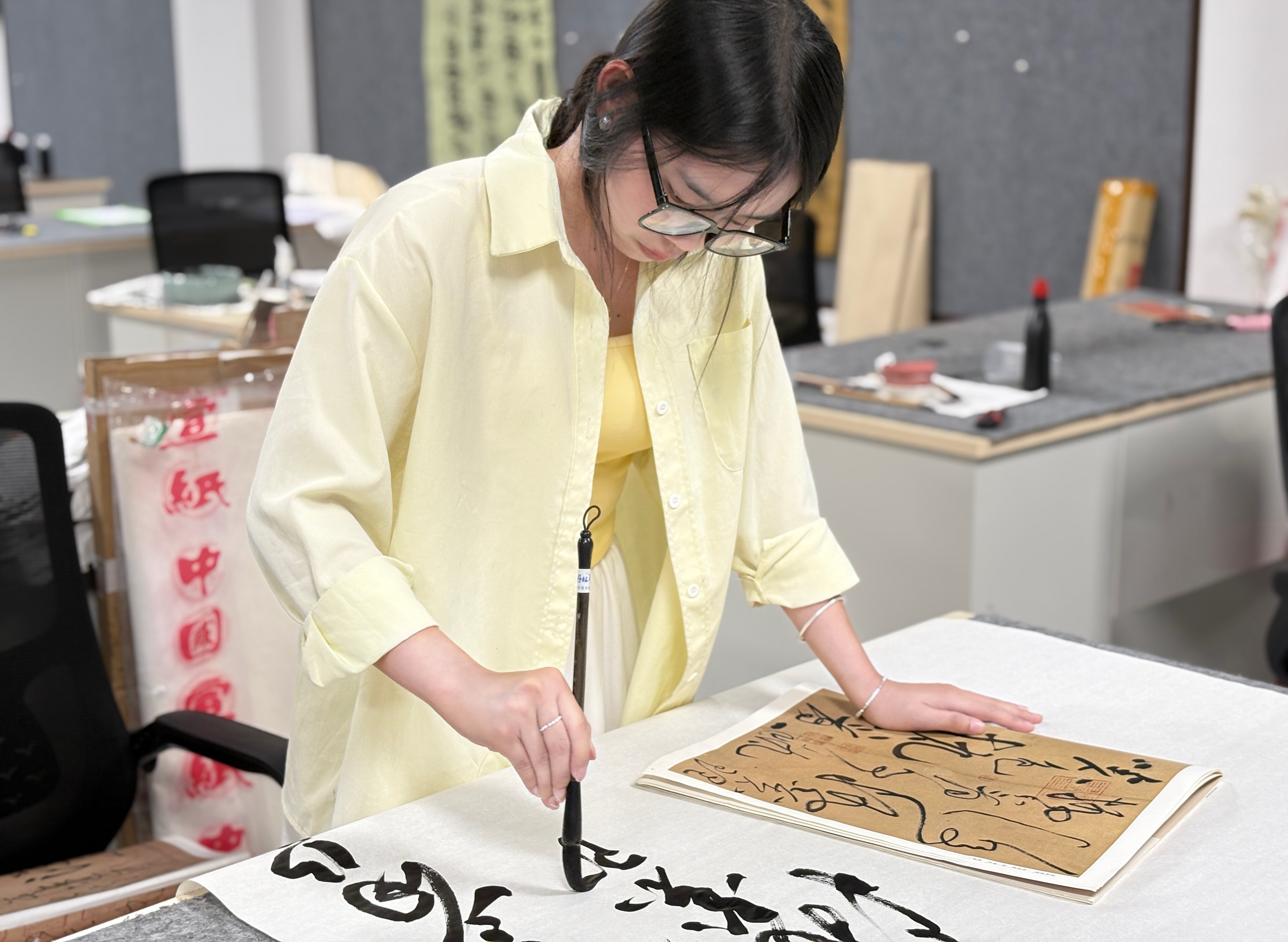 从临摹经典到创新创作,从课堂学习到社会实践,林清瑜的成长轨迹,既是个人逐梦的缩影,更是书法学院以课程体系夯实基础、以实践平台赋能发展的学科建设成果的彰显。未来,学院将继续以文化人、以艺育才,培养更多如林清瑜般“提笔能书、俯身能行”的新时代书法人,让墨香在传承与突破中永续流淌。(盛可欣 摄)