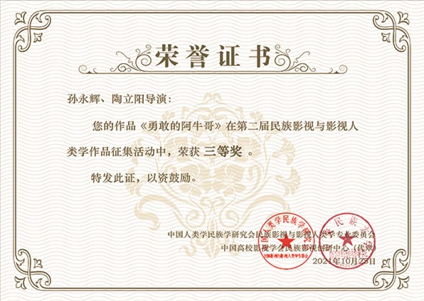 《勇敢的阿牛哥》第二届民族影视与影视人类学作品征集三等奖