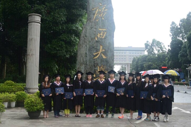 2014年7月20日早上9::00,在我院继续教育办李水亮主任、广西大学朱奇志主任的积极组织下,集中在广西大学参加学位授予仪式!广西大学学位委员会委员、广西大学党委委员、广西大学继续学院院长苏兆成教授为在场13位同学授予学士学位及颁发了学士学位证书。最后李老师带领同学们在广西大学正大门前进行合影留念,为此次广西大学与北海艺术设计学院专本衔接班学士学位授予仪式画上了圆满的句号。
