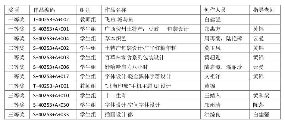 设计学院获奖名单