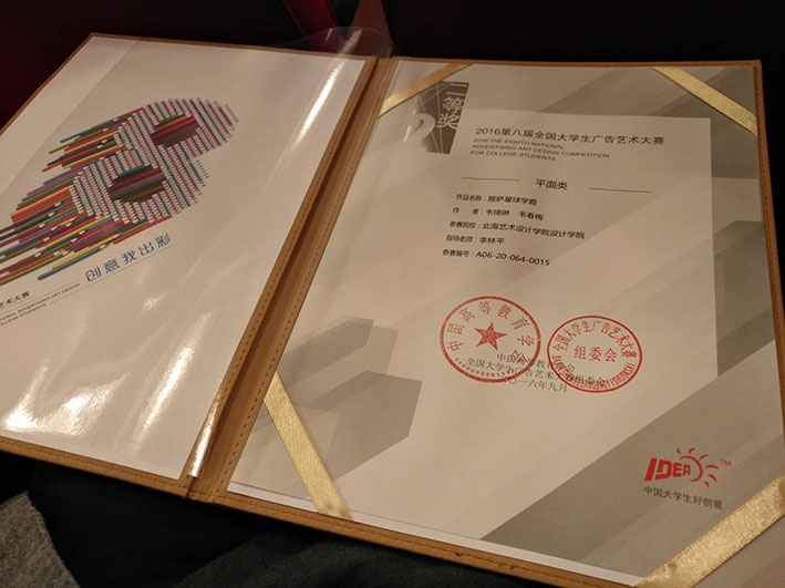 在本次比赛中,设计学院视觉传达设计专业韦琦琳、韦春梅同学创作的平面作品《披沙星球学霸篇》获得全国二等奖。黎欣欣同学的平面作品《祖山仙境》获得广西赛区二等奖,唐远珍同学的平面作品《神话故事篇》,黄广明、蓝海娟同学的广告策划案作品《真心“橙”意 体贴入胃》,赖思妤等同学的广告策划案作品《KO敏感,痛快OK》,周真安等同学的影视作品《喝启力,添动力》获得广西赛区三等奖,另外还有10件作品获得优秀奖,46件作品获得入围奖。