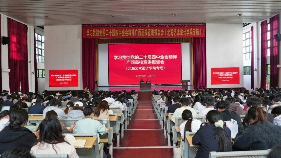 12月9日,学习贯彻党的二十届四中全会精神自治区党委讲师团特聘教授(专家)宣讲报告会(北海艺术设计学院专场)在我校西校区大礼堂举行。自治区党委讲师团特聘教授(专家)、广西大学马克思主义学院教授雷德鹏作宣讲报告。我校党委书记覃宪儒、校长卢新华等在家校领导、中层领导干部、党员、教师与学生代表到场聆听报告会。我校党委副书记刘承初主持报告会。