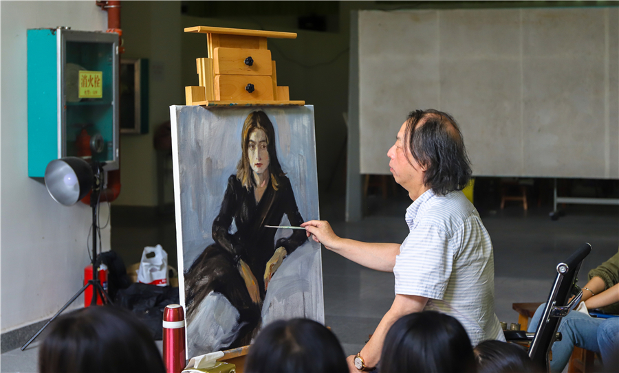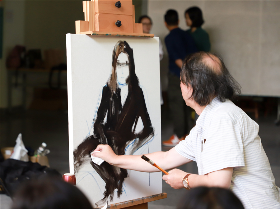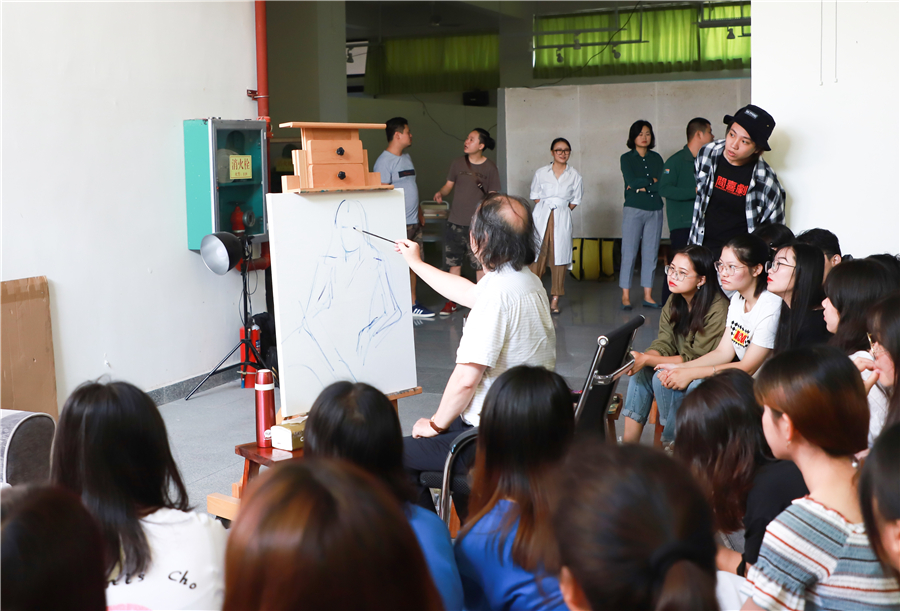 湖南师大美术学院曲湘建教授莅临我校美术学院进行人像写生示范教学