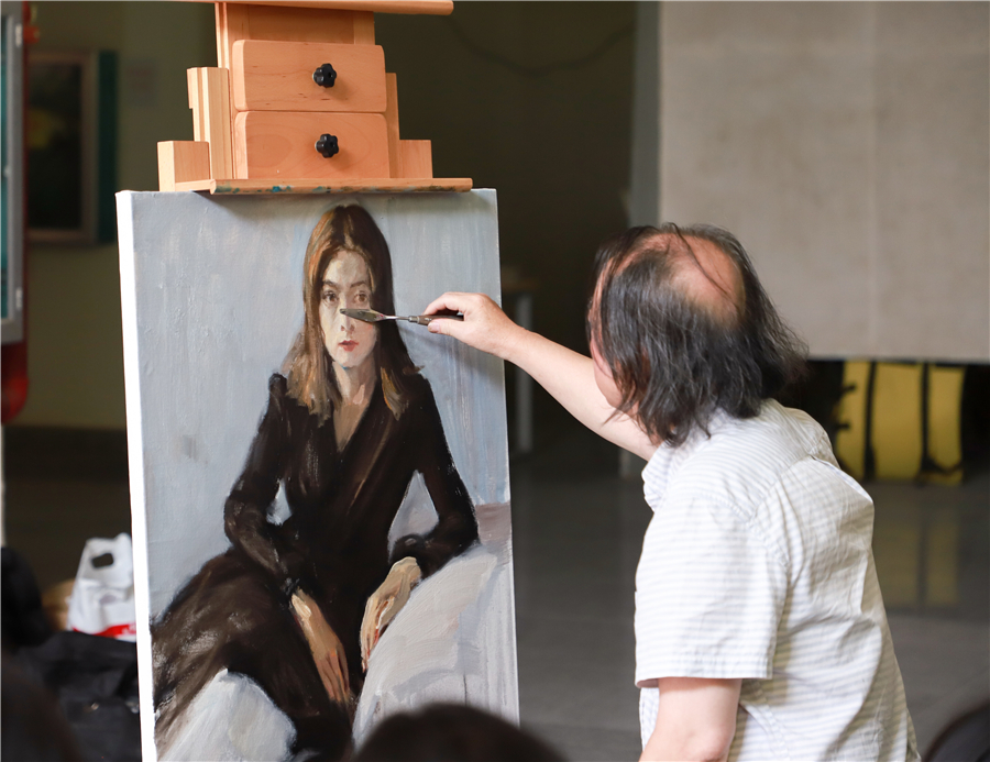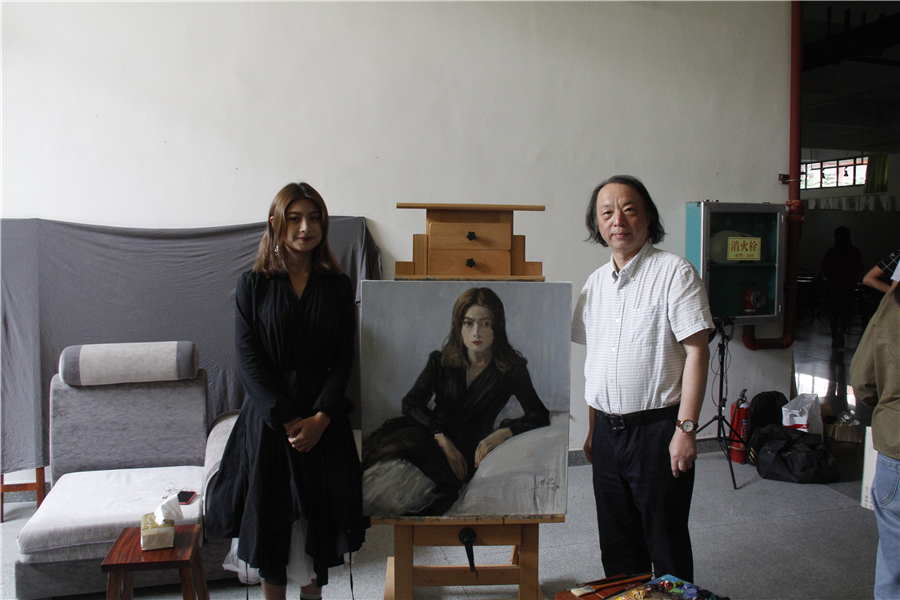 2019年10月19号上午8时,曲湘建教授莅临美术学院教学区,为美术学院同学上了一堂精彩的油画人物现场写生示范课。