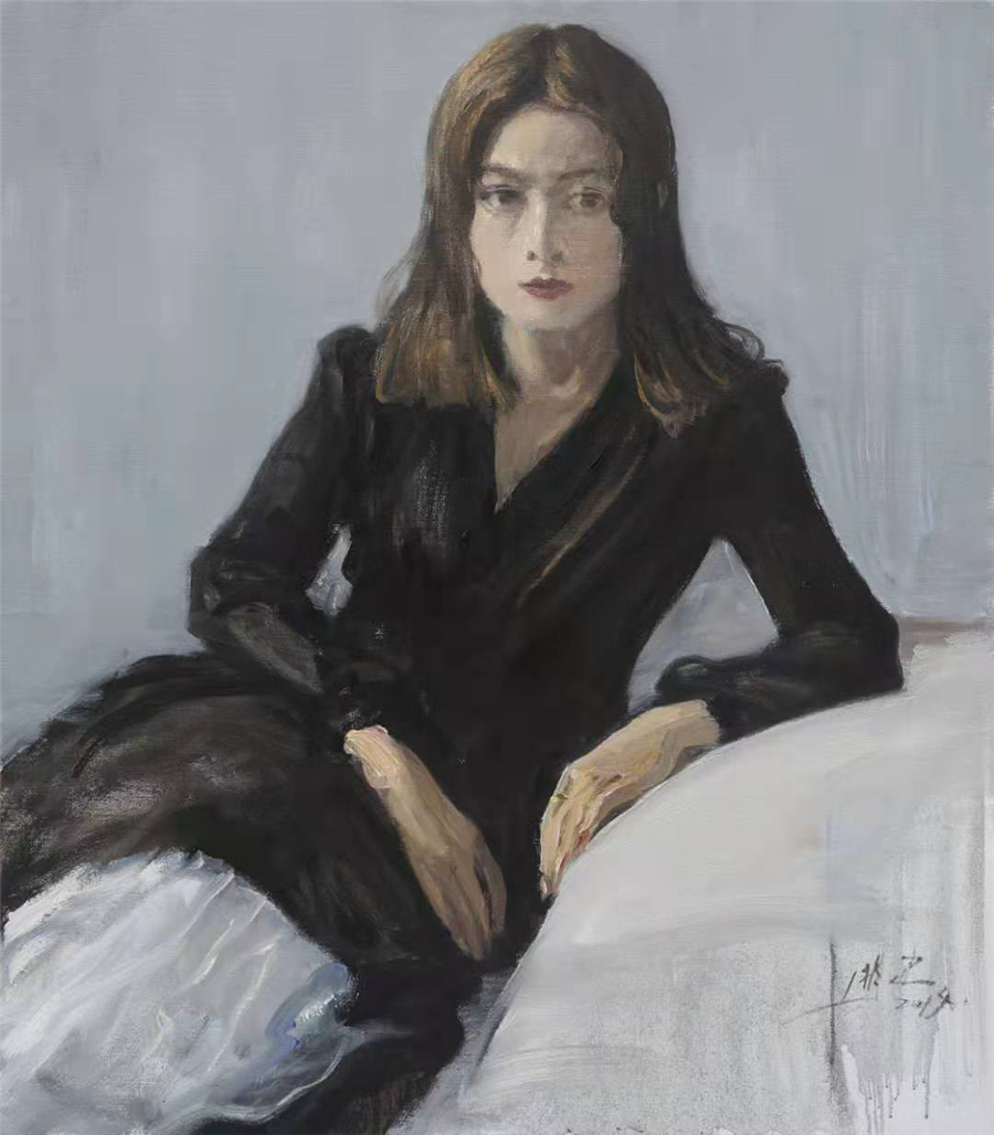 步骤一:人像示范的第一步是给模特定好位置和pose,并且注意光线,色彩和背景的呈现,展现出整体的曲线美,为接下来画好油画打好基础。
