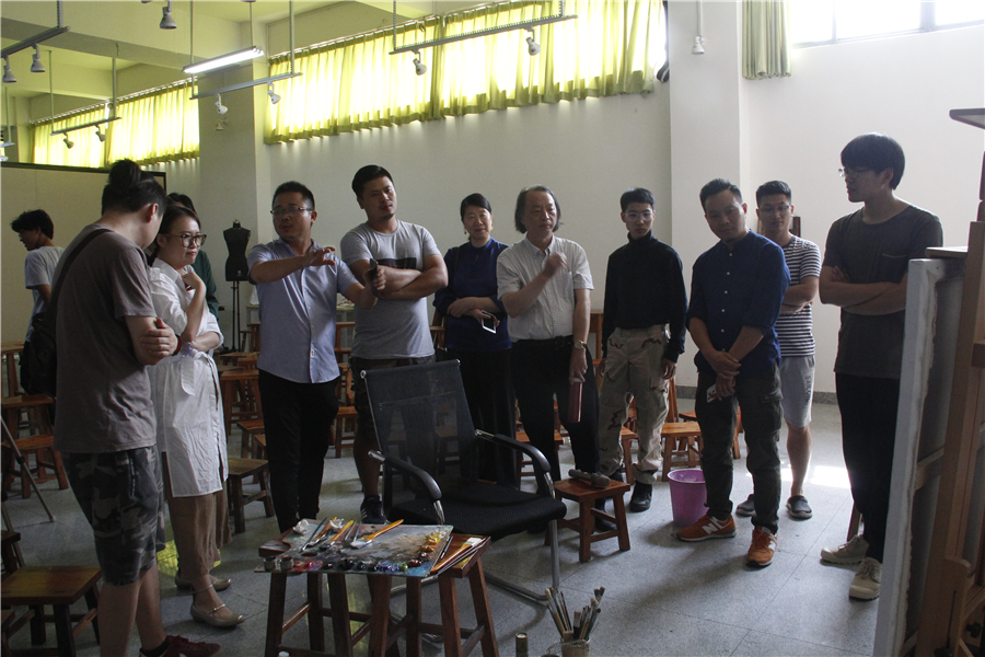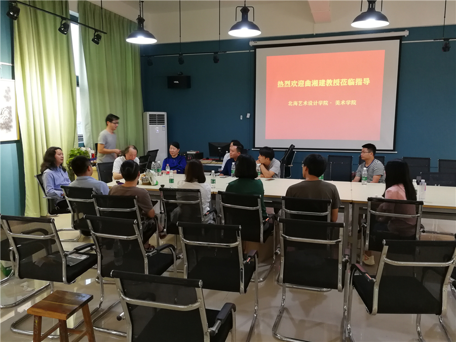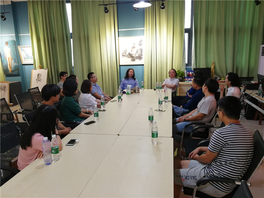 下午16:30分,曲教授及其夫人张柳青还莅临绘画教研室参加了由胡胜副校长主持、美术学院副院长龚为、教研室主任张湘中、教务办主任肖玺和青年教师共同参与的教学研讨活动。研讨活动中,曲教授分享了自己多年的从教经验,与各位老师讨论了美术学院在教学、科研以及未来的发展方向的问题,提出诸多良见。随后,曲教授浏览了青年教师创作的优秀作品,并为青年教师答疑解惑,还以其夫人张柳青为例,向青年教师讲述了艺术创作中该如何学习提高,通过与曲教授的交流,我校青年教师对美术教学的理解更加深刻,进一步推动我校美术专业的发展。