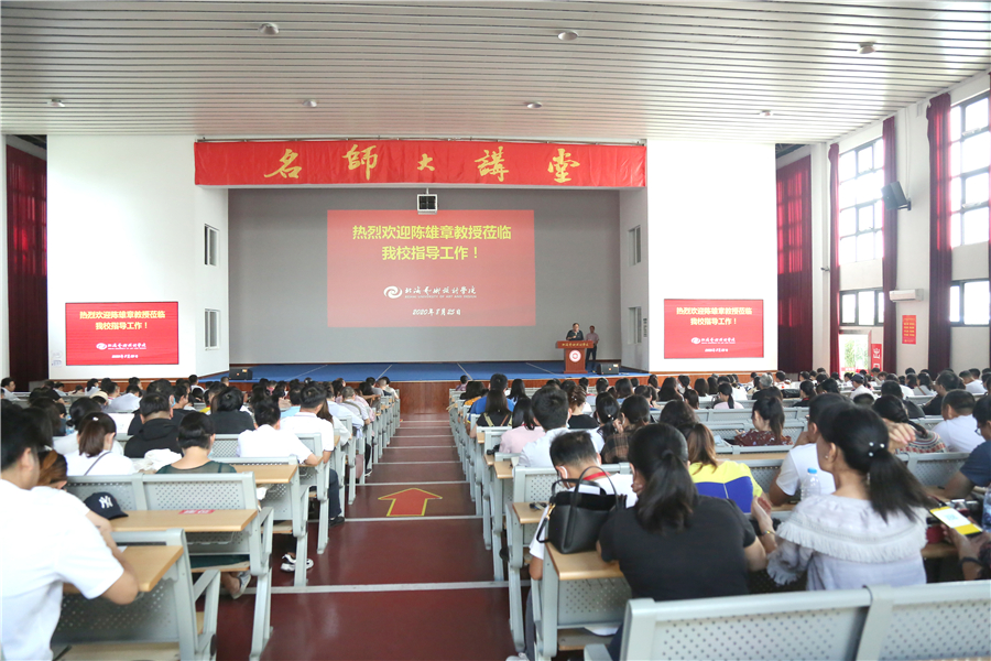 为强化内涵建设,突出特色发展,完善教学质量保障体系,扎实推进我校本科教学合格评估工作, 2020年8月25日下午,我校邀请南宁学院副校长陈雄章教授来校开展以“新建本科高校的迎评促建”为题的专题讲座。讲座在西校区大礼堂举行。常务副校长贺争平、副校长张建虹、张跃、胡胜、王斌、邱杰等学校领导和全体教师、管理人员聆听本次讲座。