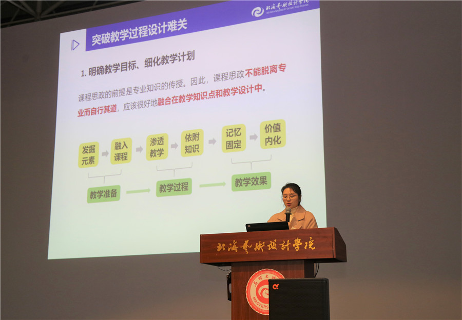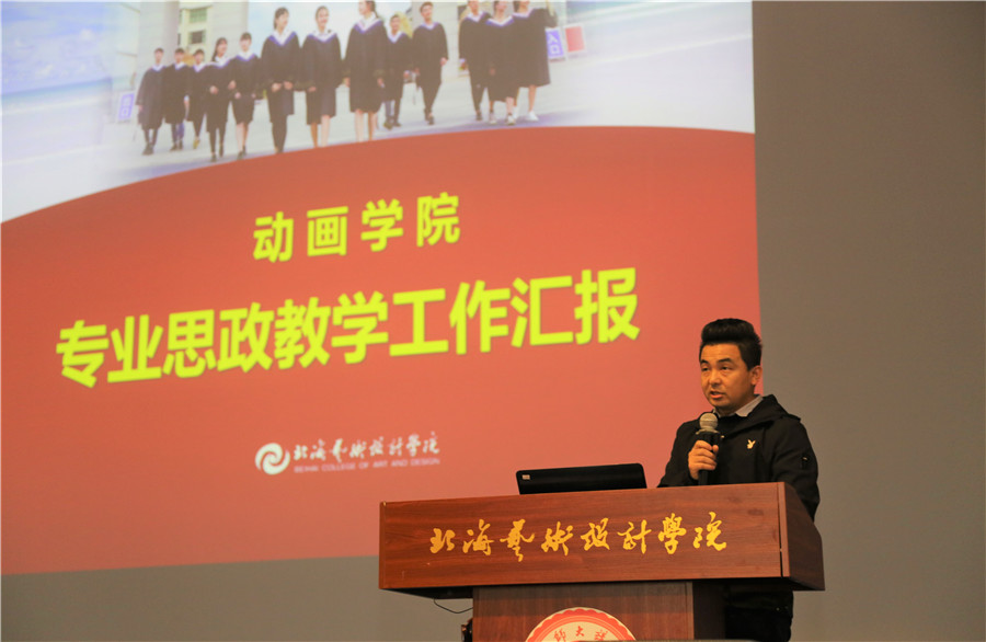 孙永辉、吴慧霞老师分别代表动画学院、设计学院介绍了“课程思政”建设情况。通过以课程思政为基础积极推进专业思政建设,谋划建设思路、挖掘思政元素、运用教学案例,将思政内容贯穿于专业的培养方案、教学大纲等各个方面,有效地促进了专业课程思政体系建设。