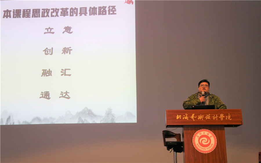 会议邀请了广西大学张明学教授做“课程思政”专题讲座。张教授从关于立德树人的提出及重要论述、立德树人的含义及其与课程思政的关系、艺术类教学中的课程思政三大方面进行了讲述,并分享了广西大学艺术学院艺术类专业开展课程思政的相关实例和经验。张教授讲到,将思想政治教育贯穿人才培养体系,创造性地将课程思政融入课堂教学中,全面推进艺术类专业课程的课程思政建设,发挥好每门课的育人作用,是全体高校教师的职责所在。