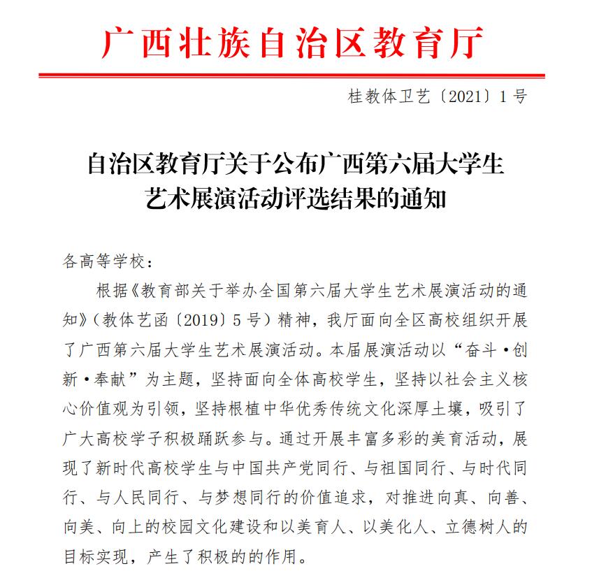 喜讯||我校在广西第六届大学生艺术展演活动中喜获佳绩
