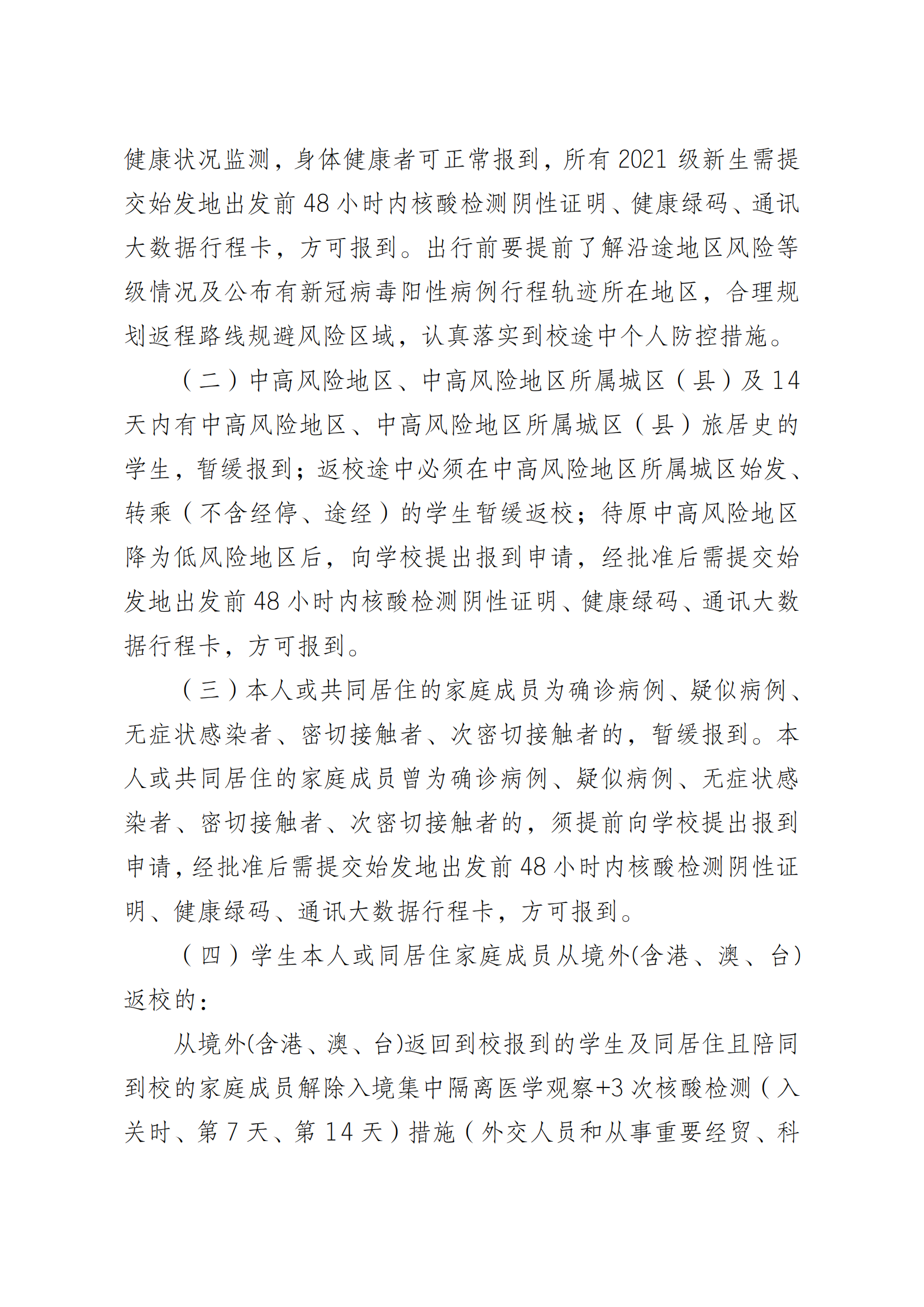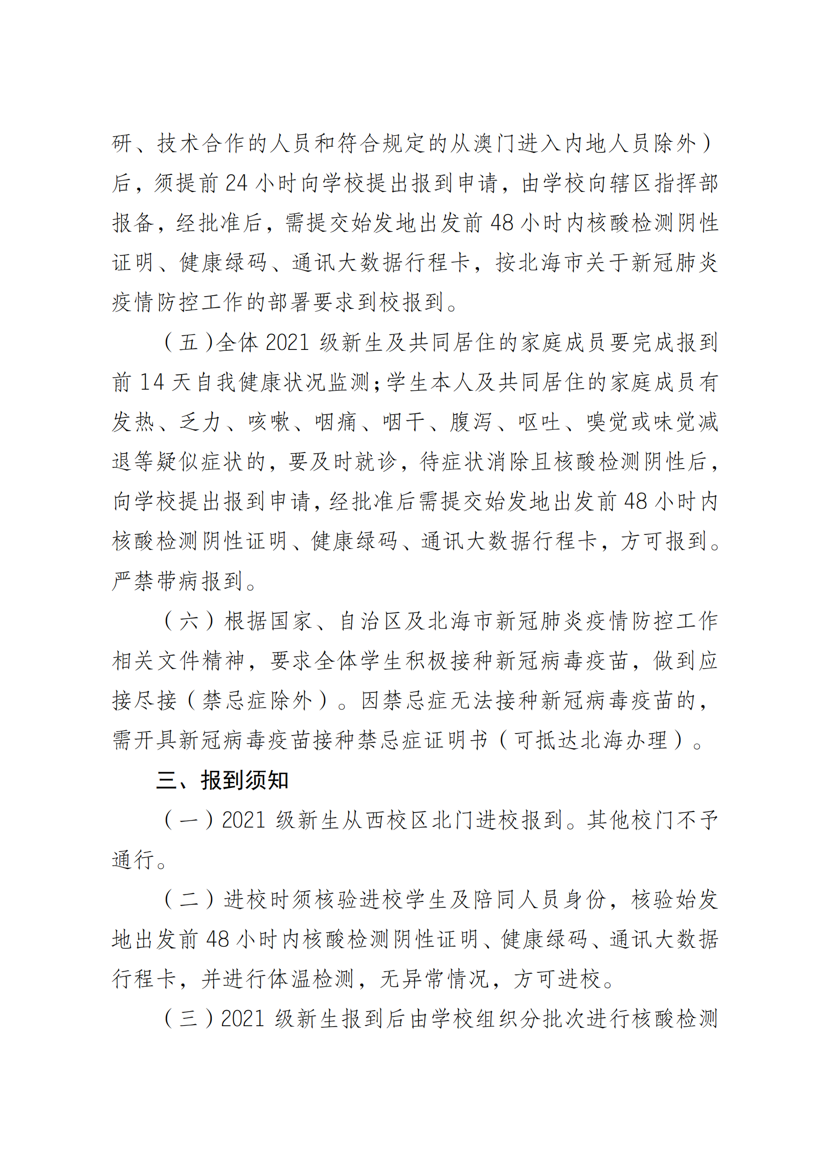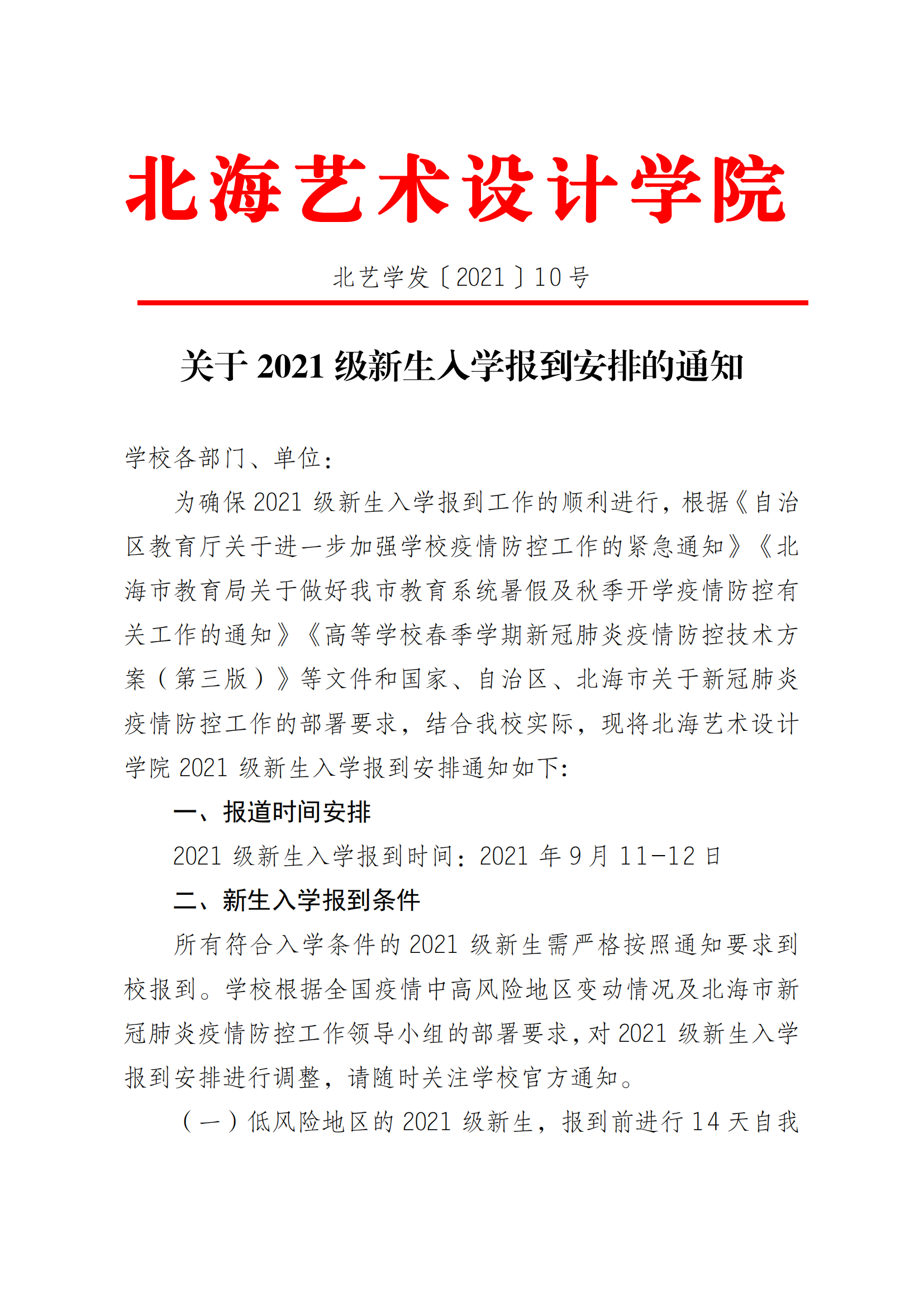 关于 2021 级新生入学报到安排的通知