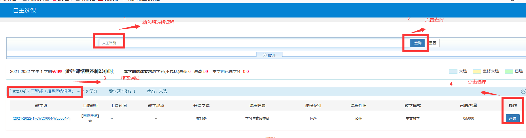 四、选课方法及注意事项