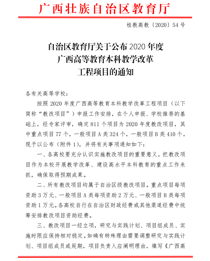 自治区教育厅关于申报2020年度 广西高等教育本科教学改革 工程项目的通知