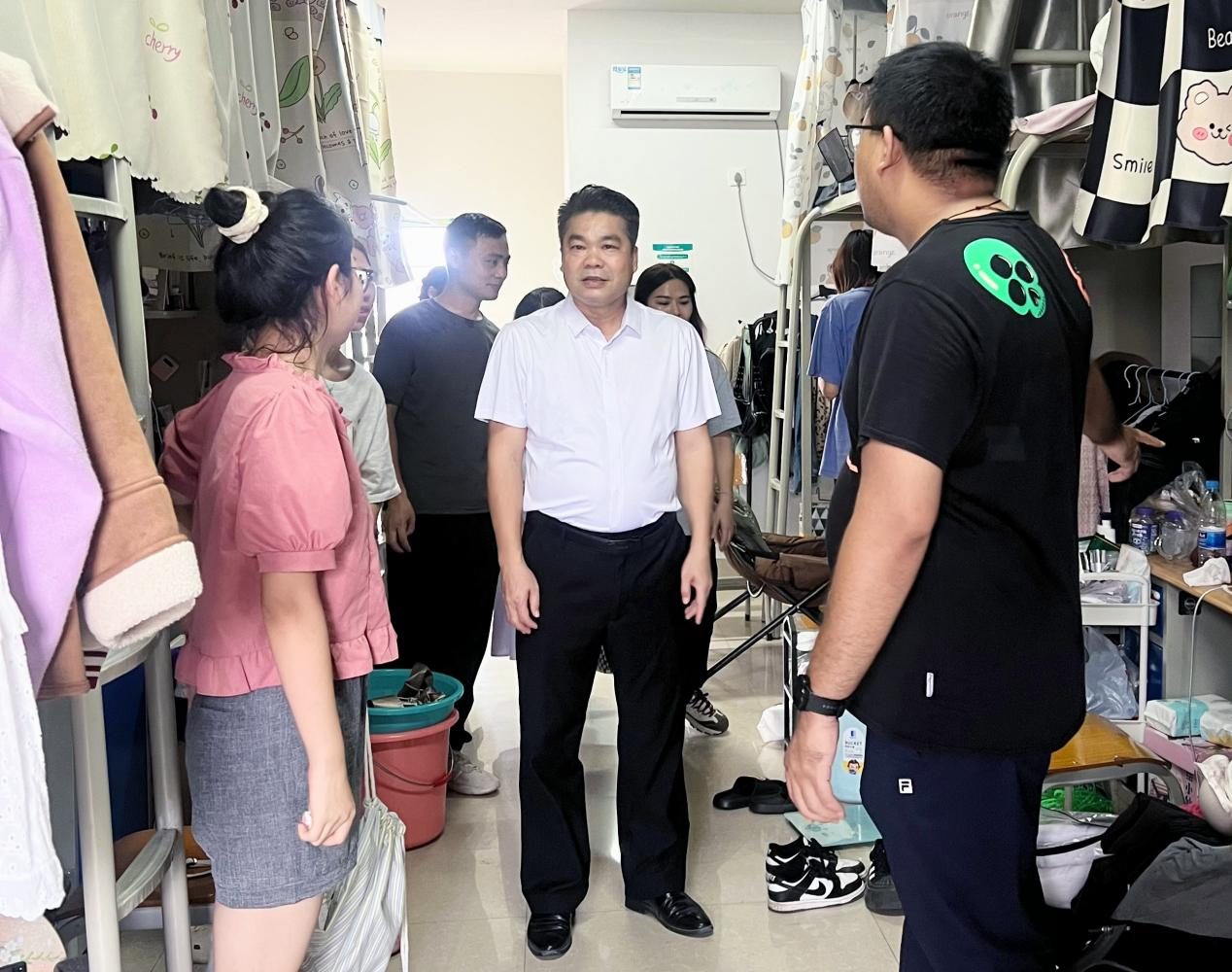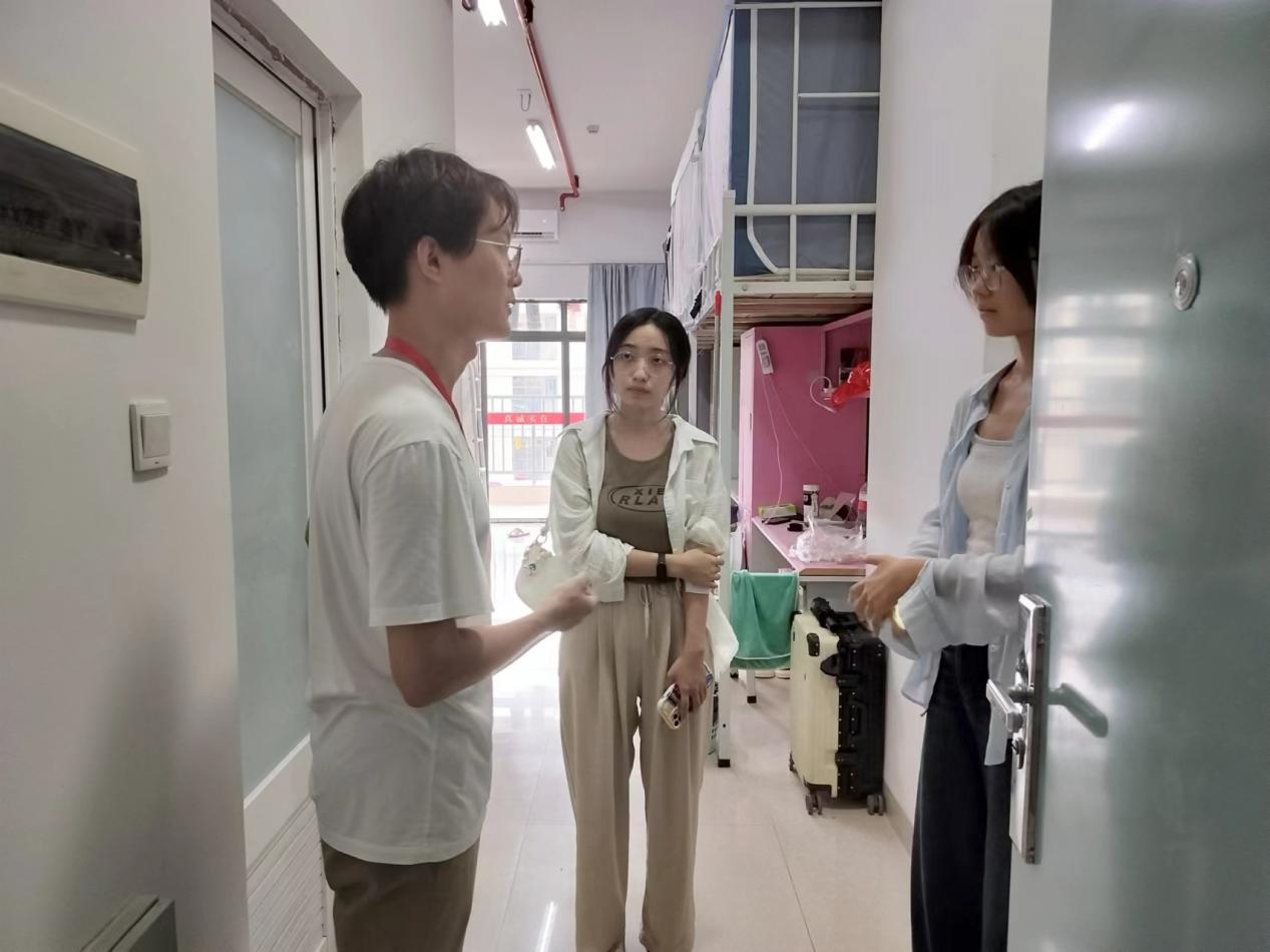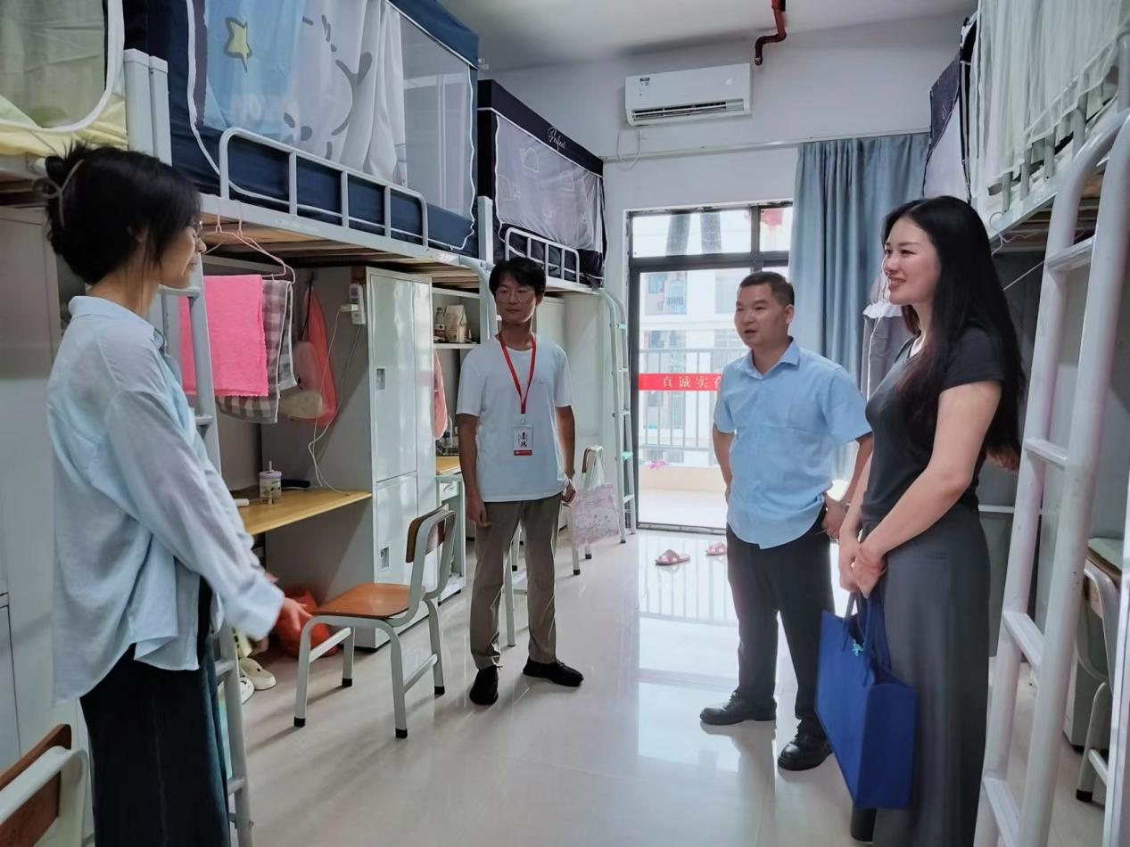 9月4日至5日,李水亮副院长一行走访了2022级和2023级学生宿舍。在走访过程中,学院领导和各年级辅导员仔细检查学生宿舍安全卫生情况,并细心询问同学们的新学期学习计划,叮嘱大家新学期要尽快调整状态,合理安排时间,劳逸结合,保持健康的学习生活习惯,严格遵守学校各项规章制度,共同创造安全健康的宿舍环境。同时,提醒同学们要注意近期的台风天气,做好雷雨天宿舍防水断电工作,减少雨天外出,确保个人生命安全最后,学院领导希望同学们在宿舍里能常沟通,多包容,相互帮助,共同成长。