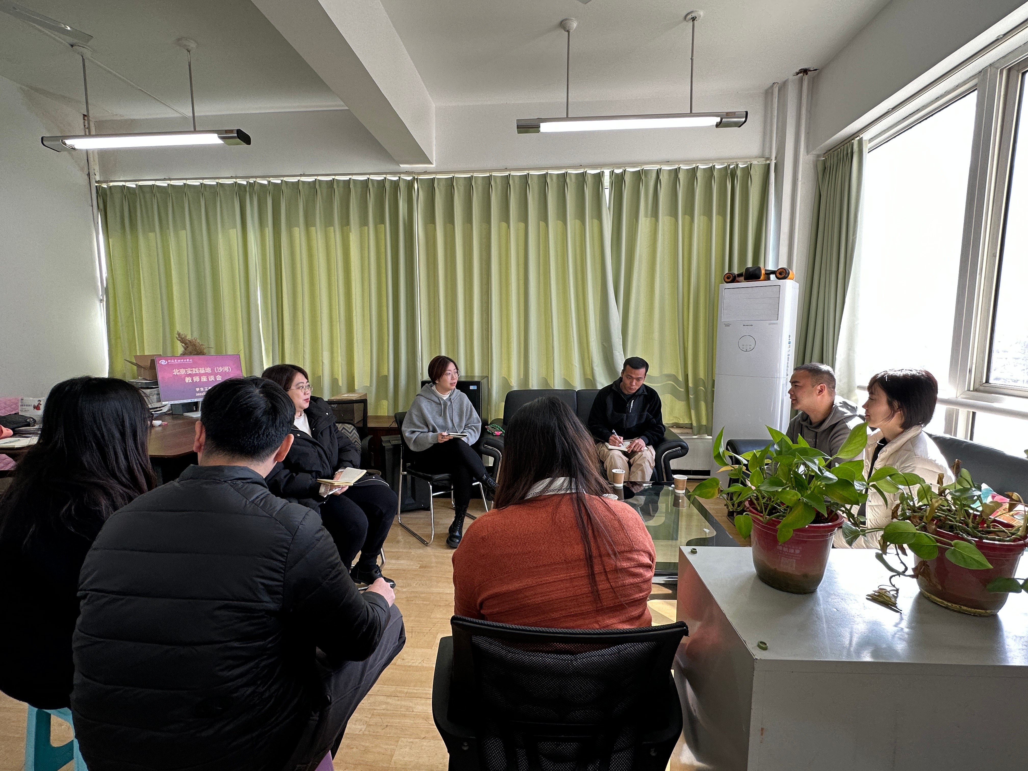 同时,学生工作处老师还与北京实践基地的学生代表进行了面对面交流,听取了他们对北京实践基地学生工作的意见和建议。学生们表示,上京之初对于气候、环境、饮食、课程量等方面存在短时间的不适,但对于北京实践基地的各项安排都较为满意,也通过各种各样的方式感受到了更为开阔的视野。对于即将到来的毕业、就业等问题,部分学生仍较为迷茫。针对学生毕业前的焦虑问题,学生工作处的老师也进行了分析和疏导,老师们建议同学们拓宽就业信息的获取渠道,在就业之初重视经验和资源的积累,以更加良好的素养面对就业困境。