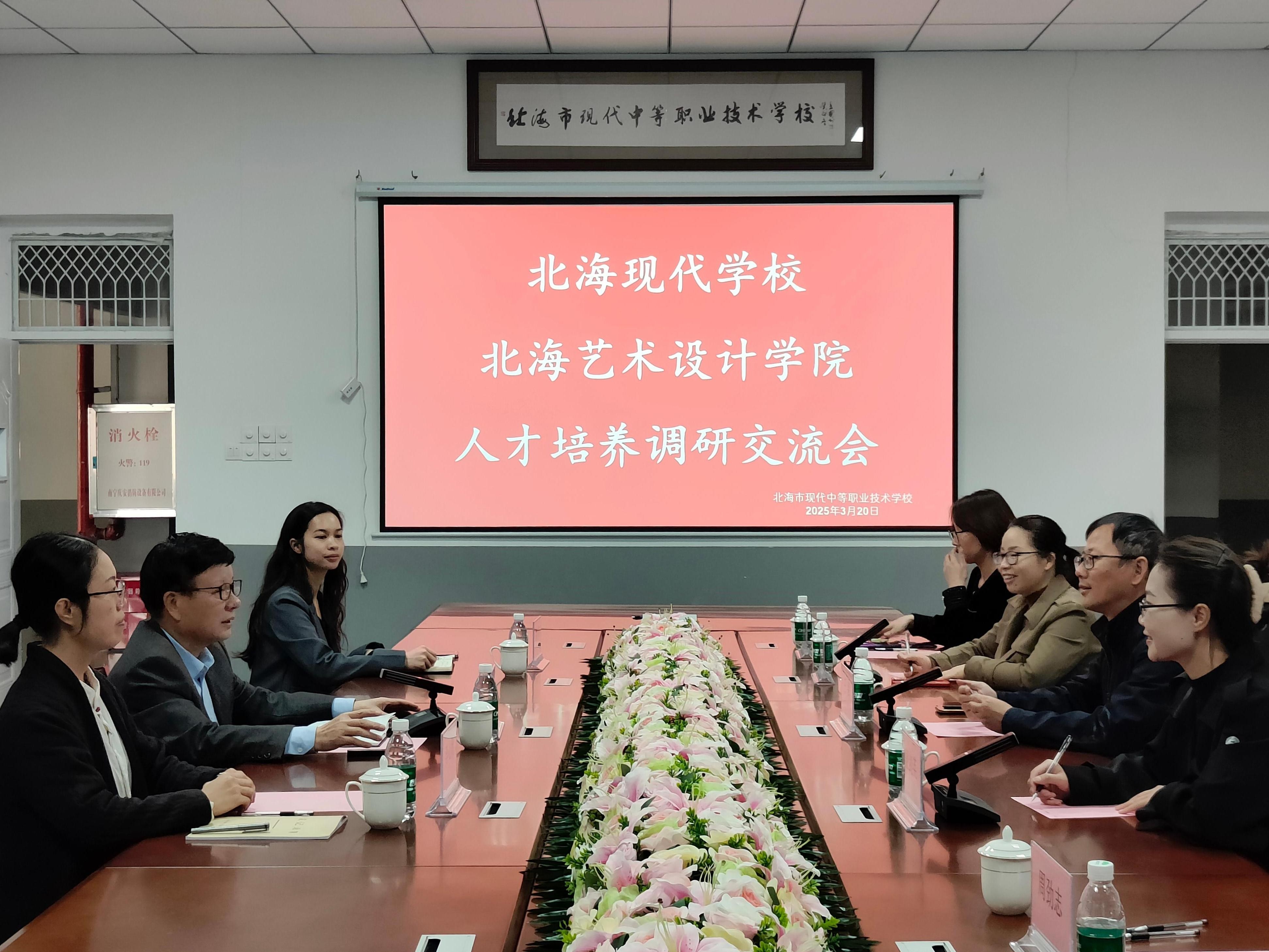 3月20日上午,北海艺术设计学院王斌总督学率教育学院领导班子一行到北海现代中等职业技术学校开展人才培养专题调研暨访企拓岗活动。双方围绕人才引进、共建就业实习基地、推进人才共育等校际合作议题展开深入探讨,并就未来合作方向达成多项共识。