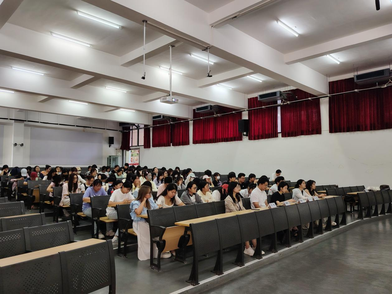学生管理方面内容主要由学院副院长裴景旺进行主讲。裴副院长对学生叮嘱了三件事情:一是师生协力做好离校工作,强调学生归还图书、公共物资等离校手续的办理时限,以及宿舍实行“三无标准”验收的要求;二是细化上京求学安排;三是开展征兵动员、就业创业宣传,通过政治、成长、经济“三笔账”分析入伍优势。现场通过播放征兵入伍宣传视频,有效激发了同学们的报国热情。就业创业是当代青年实现人生价值的重要途径。裴景旺副院长以当前经济结构调整带来的就业创业机遇,建议文学院学子结合自身专业背景,重点关注数字经济、绿色经济等新兴领域。