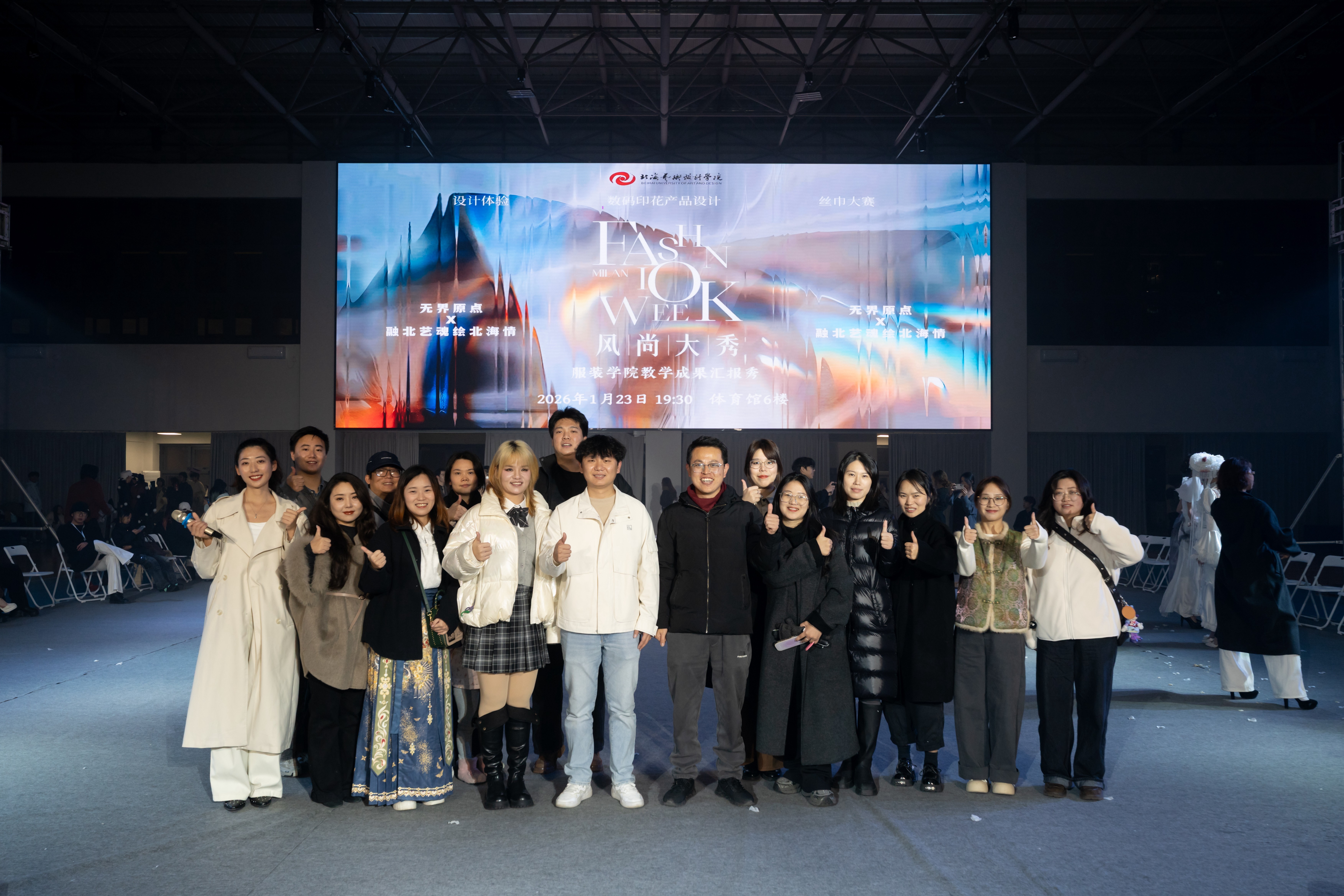 1月23日晚,“融北艺魂·绘北海情”北海艺术设计学院2025年丝巾设计大赛颁奖典礼暨作品秀场圆满落幕。学校副校长邱杰、陶立阳、包建明,总督学王斌、宣传部部长文春明出席颁奖典礼。服装学院党支部书记曹永攀、机关第二党支部书记覃虹、马克思主义学院院长姜献生、建筑与环境艺术学院院长张春东、传媒艺术学院院长杜博、造型艺术学院院长邓渠成、创新创业学院院长陈渤水、文学院常务副院长梁镨文等学校各部门、二级学院相关领导参加活动。