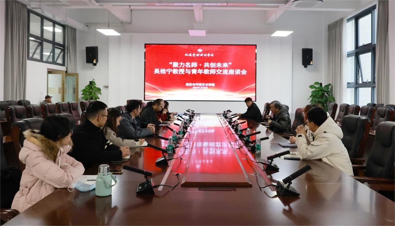 北海艺术设计学院建筑与环境艺术学院于2024年1月26日16:30在艺德楼805举行了“聚力名师·共创未来”吴桂宁教授与青年教师交流座谈会。座谈会由建筑与环境艺术学院副院长张春东主持。