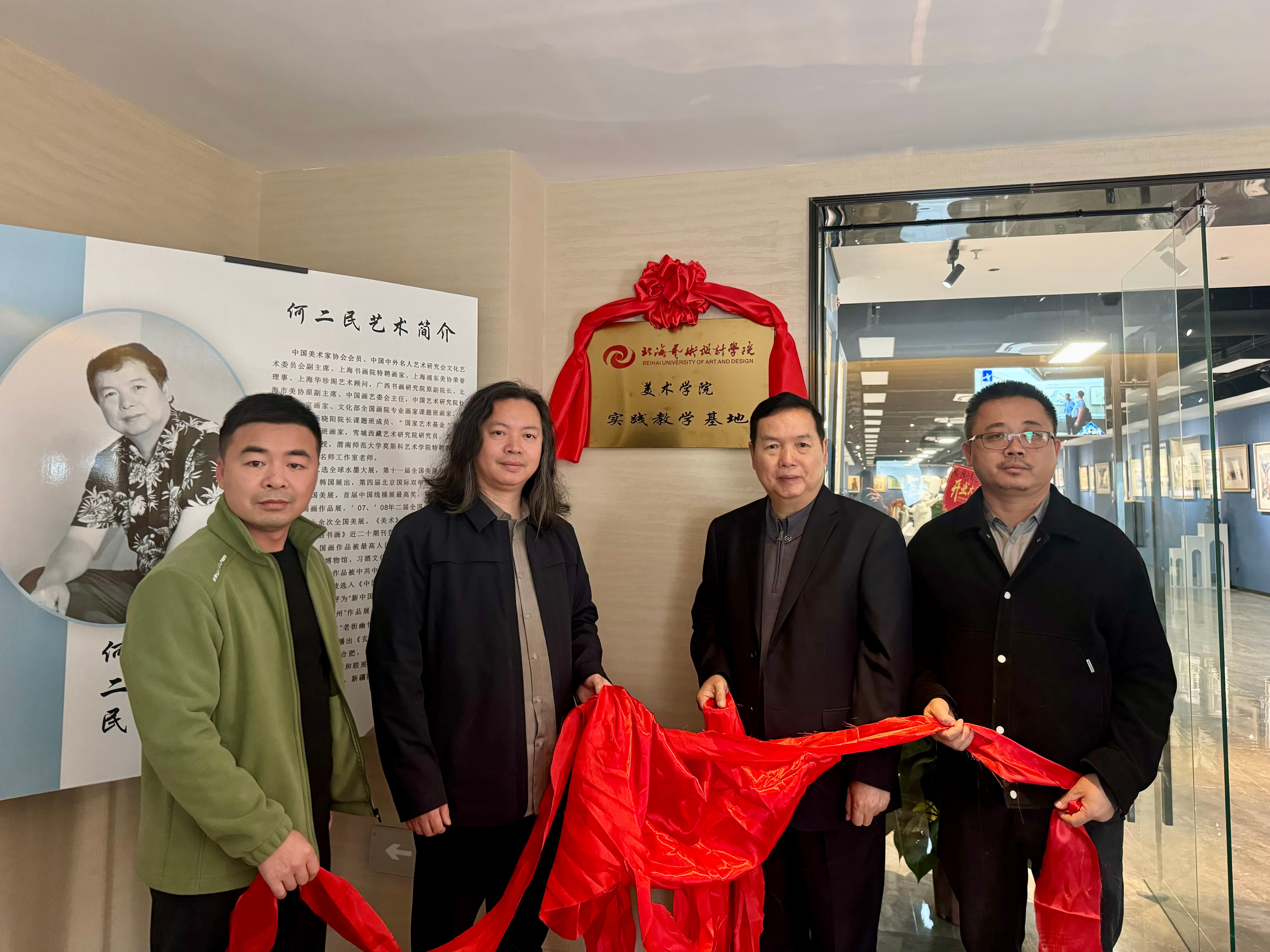 12月19日下午,北海艺术设计学院美术学院一行人前往北海市何二民美术馆,共同参加了美术学院实践教学基地的揭牌仪式。出席此次仪式的领导包括学校常务副校长胡胜、学院执行院长龚为以及副院长陈建江。