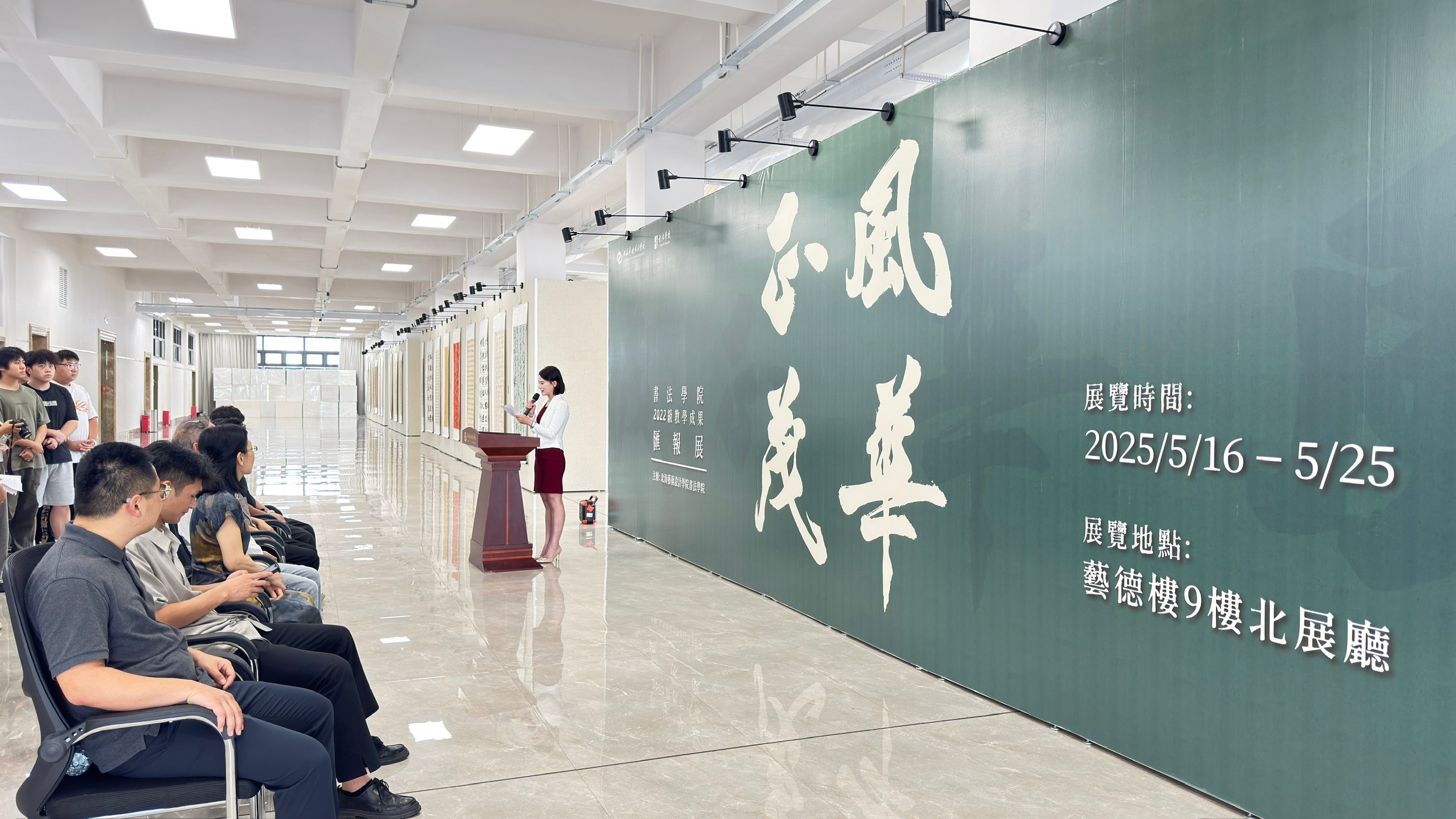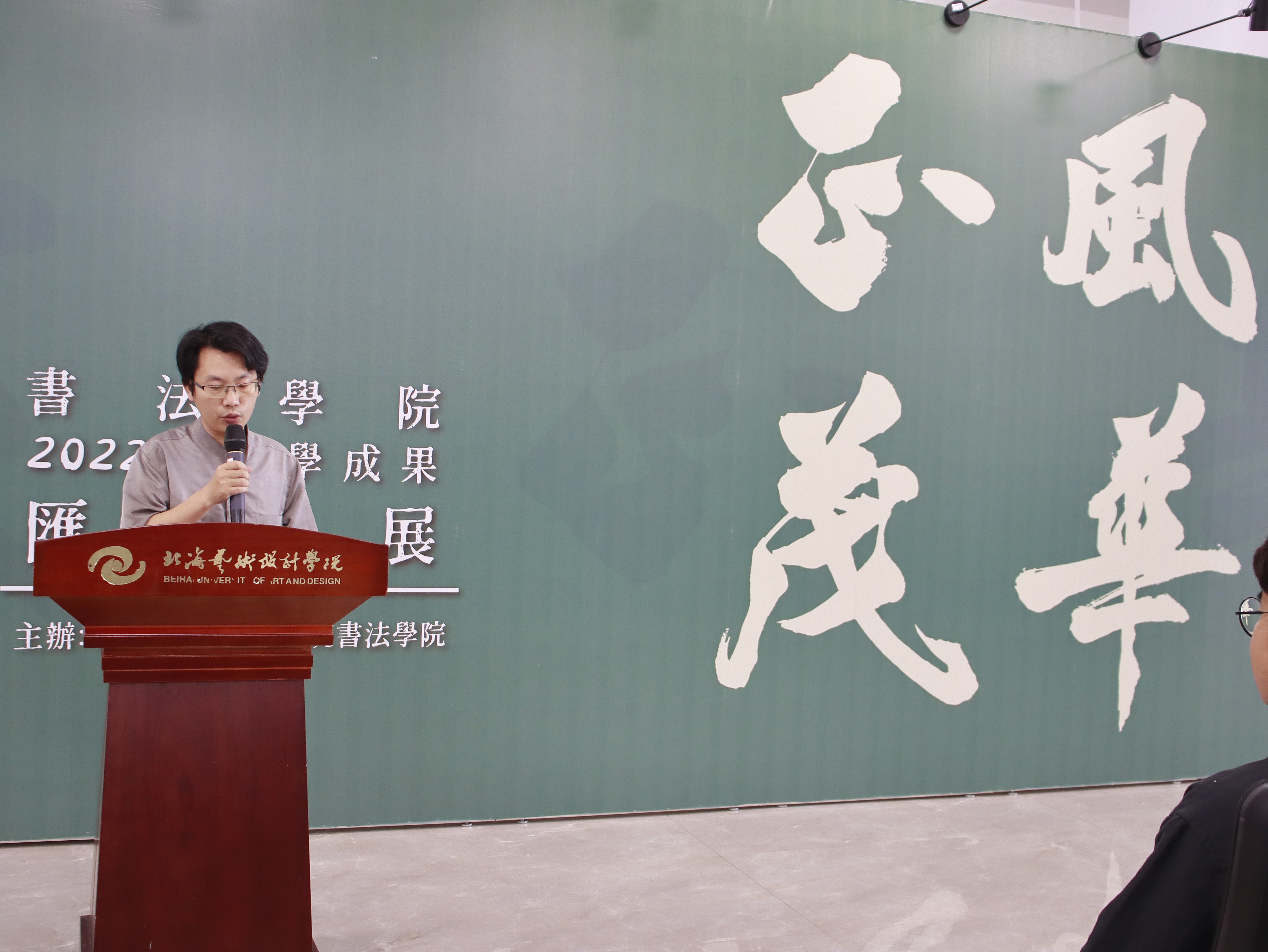 5月20日下午,风华正茂——书法学院2022级教学成果汇报展在艺德楼9楼北展厅顺利开幕。北海艺术设计学院党委副书记陈毅华、书 法学院客座教授张韬、书法学院的主要领导及老师出席本次展览开幕式共同见证2022级书法学子在专业学习中的重要成果