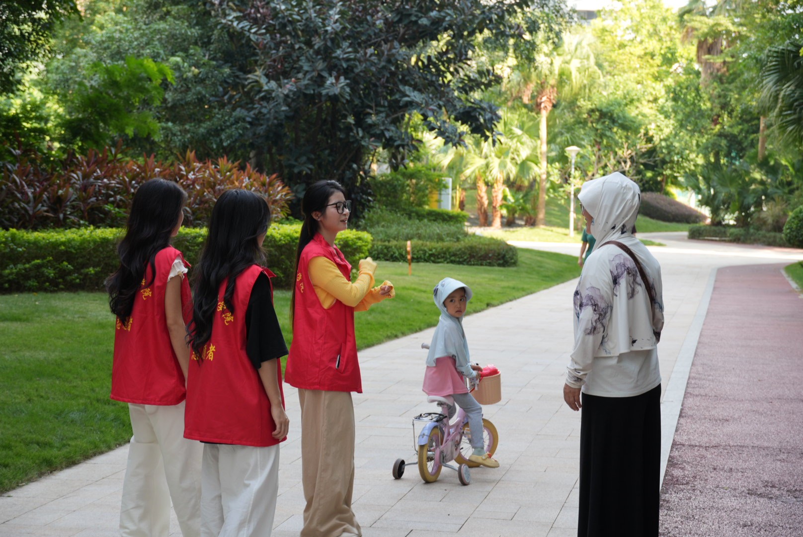 活动伊始,志愿者们化身为“清洁卫士”,投入到热火朝天的社区卫生清洁中。同学们手持清洁工具,分工协作,默契配合。他们细致地清理绿化带中的隐藏垃圾,认真擦拭公共宣传栏与健身器材,并将散落在步道上的杂物拾起。汗水挥洒处,社区焕新颜。志愿者们忙碌的红色身影与秋日的金色阳光交相辉映,构成了社区里最活力的图景。他们的劳动不仅美化了社区的物理环境,更用实际行动向居民传递了“社区是我家,清洁靠大家”的环保理念。