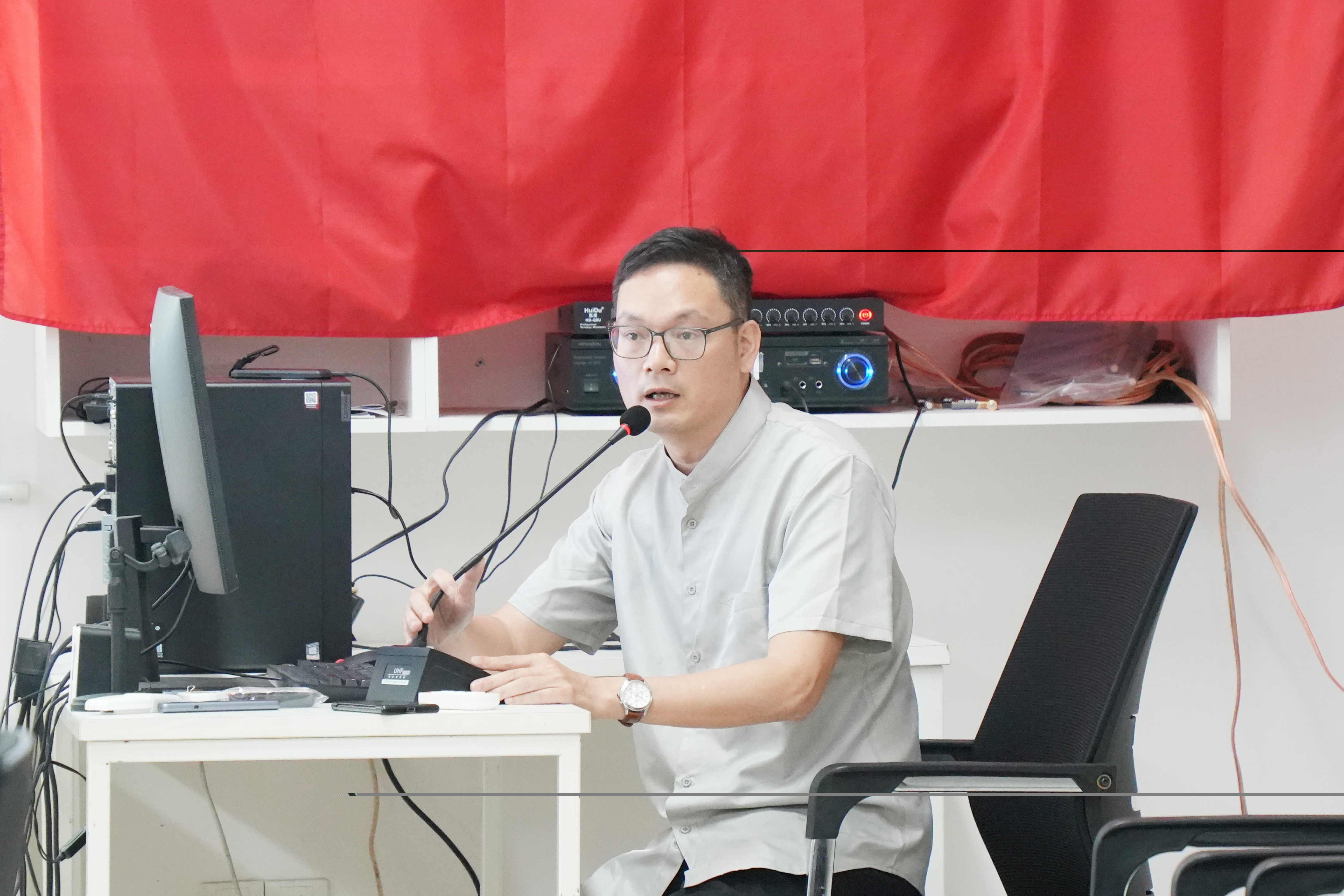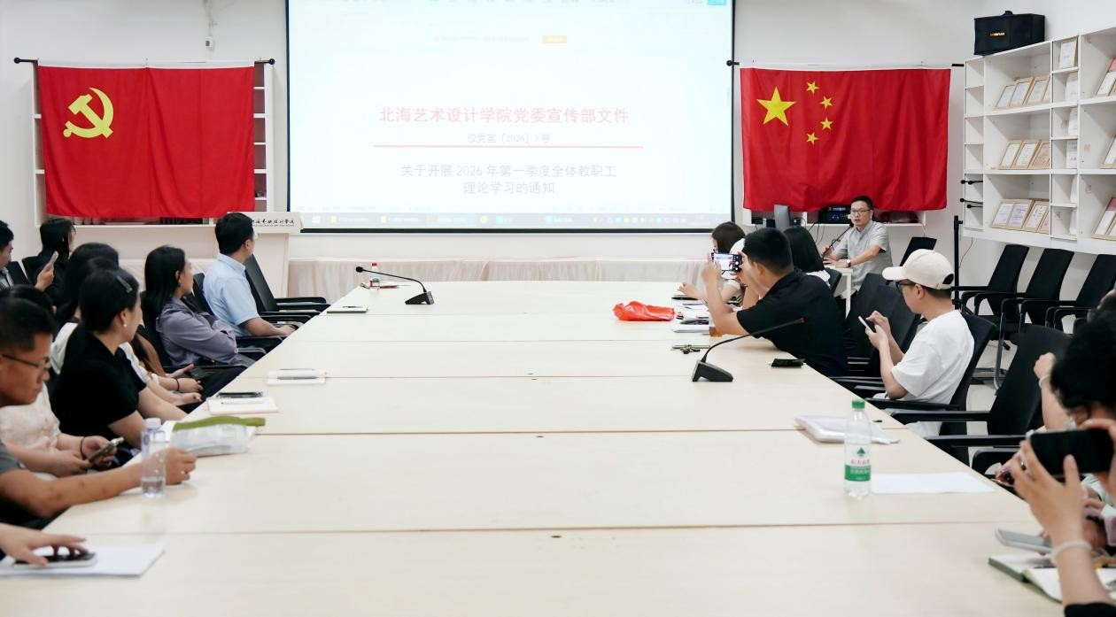 2026年3月25日上午8:30,建筑与环境艺术学院在公德楼207开展了2026年第一季度全体教职工政治理论学习会议。本次会议由建筑与环境艺术学院党总支书记庞定坤带领学习,学院全体教职工参加会议。本次学习以深入贯彻全国两会精神为核心,通过集体研读《校党宣〔2026〕3号附件:北海艺术设计学院2026年第一季度教职工理论学习资料》文件,进一步凝聚了教职工的思想共识,激发了大家的工作热情。