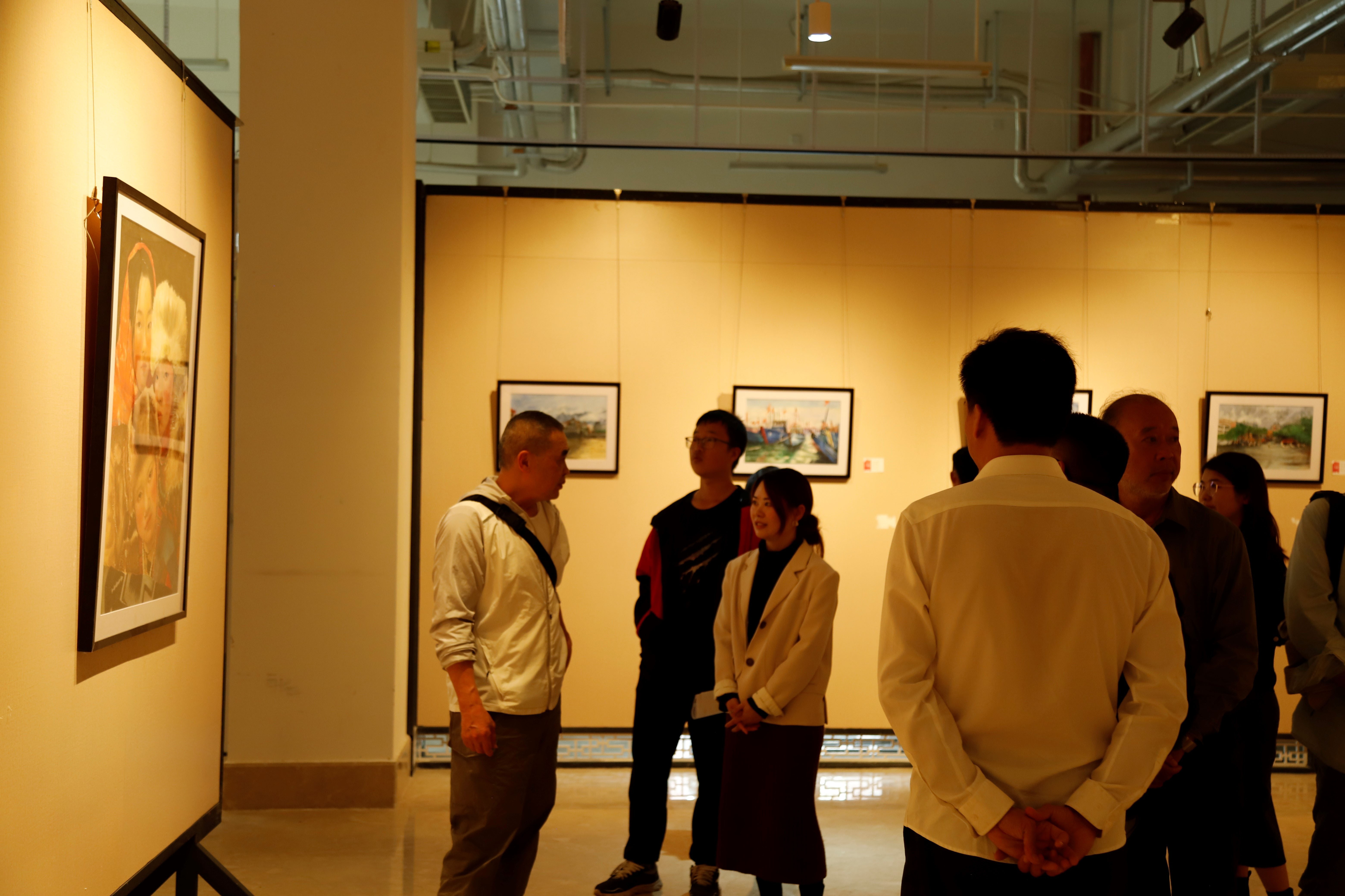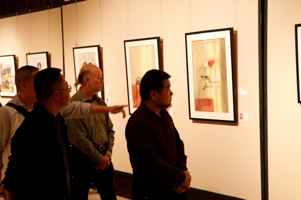 2021年12月16日下午三点,美术学院2019级绘画专业水彩方向的课程作业汇报展在西校区图书馆一楼展厅正式开展。北海市美术家协会主席肖畅恒,北海市画院院长蔡群徽,美术学院特聘教授刘广斌,潘毅群教授,张玉祥教授,副校长陶立阳,美术学院副院长龚为应邀出席开幕仪式。
