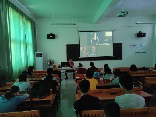 随后,何老师在艺术楼314多媒体教室为同学们讲授了一堂专门针对如何解决油画创作中具体问题的课程,课程涉及到古代和现当代绘画创作的经典构图样式、色彩的运用以及如何有效的处理创作素材等。